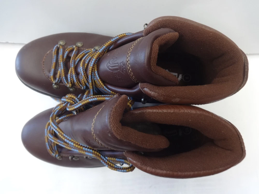 Experience the ultimate blend of style and comfort with these rare LL Cool J Najee (son’s name) Kilimanjaro boots. Designed by the legendary rapper himself, these mid-length leather boots feature a striking brown lace-up design, complemented by the iconic LL Cool J logo and eyelet accents. The 6" high ankle support ensures a comfortable fit, while the lightweight polyurethane insole and fabric lining provide an insulated and water-resistant experience. Perfect for casual occasions, these boots are equipped with dog tags that showcase your unique personal style. The round toe shape and solid pattern make them a classic addition to any wardrobe, embodying the essence of '80s streetwear and hip-hop history. Whether you're a sneakerhead or a music enthusiast, these limited-edition Najee Kilimanjaro boots are a must-have for anyone appreciating the intersection of retro flair and modern comfort. New without original box. See pics for condition Bin 176
