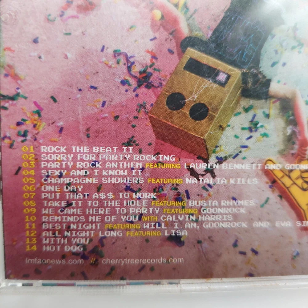 Country/Region of Manufacture:MexicoRelease Title:SORRY FOR PARTY ROCKINGType:Albumgtin13:Does not applyCD Grading:Good (G)Case Condition:Good (G)Artist:LMFAOStyle:Hip-Hop, Pop RapGenre:Pop, RockUPC:Does not applyCustom Bundle:NoFeatures:Import, Original CoverRelease Year:2011Era:2010sInlay Condition:Good (G)Color:BlackLanguage:EnglishFormat:CDEdition:First EditionCase Type:Jewel Case: StandardRecord Label:Interscope Records