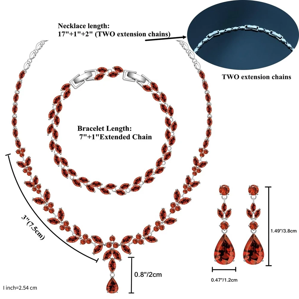 LMXXVJ Wedding Bride Silver Jewelry Set for Women,Prom Formal Costume White Cubic Zirconia Necklace Earring Bracelet Set Product Details Color: White Gold-Garnet Red Metal Type: white gold plated brass Brand: LMXXVJ UPC: 797725871212 EAN: 0797725871212 MPN: Does not apply Department : womens Date First Available : April 7, 2024 Brand, Seller, or Collection Name: LMXXVJ Metal: white gold plated brass Material: Copper Gem Type: Created Garnet Setting: Prong Setting Clasp: Lobster Clasp Number of stones: 3