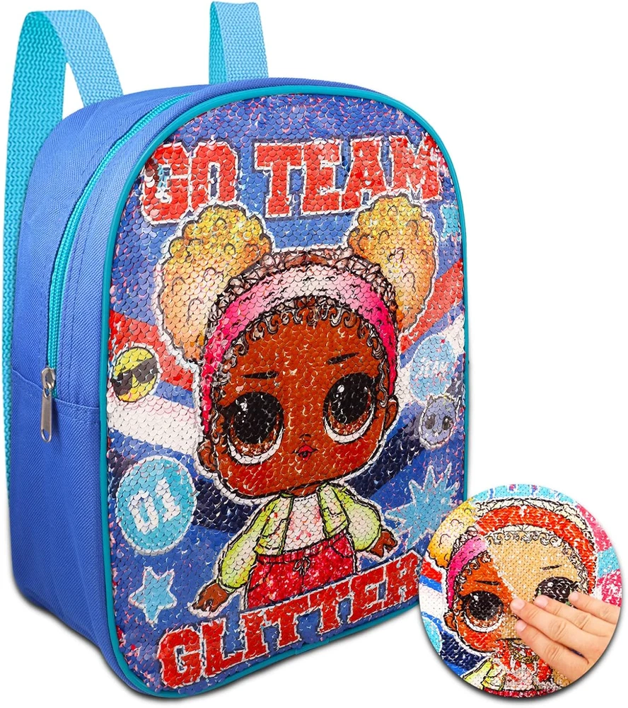LOL Surprise Mini Backpack with Lunch Bag Set - 4 Pc Bundle with 12" LOL Surprise Backpack with Reversible Sequins, Lunch Box, Stickers, More | LOL School Supplies.