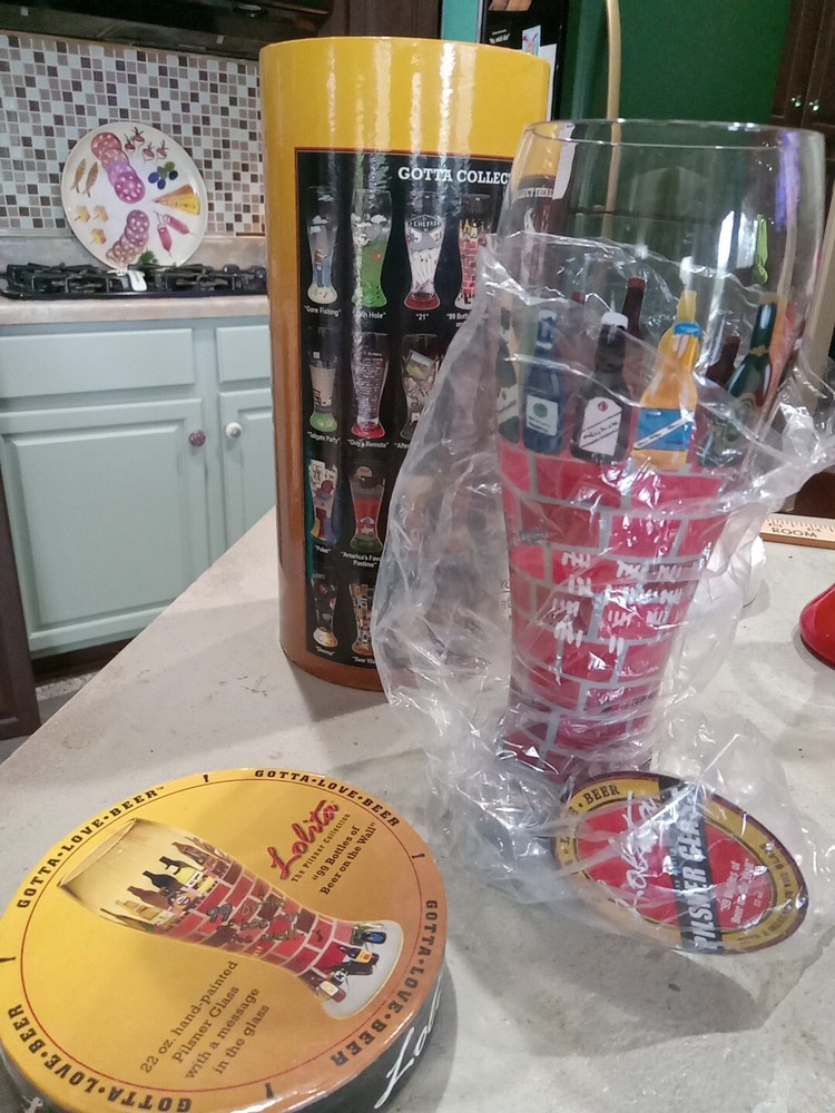 Add some personality to your drinking game with this 22oz Lolita Beer Pilsner Glass! Hand-painted with a fun "99 Bottles of Beer On the Wall" theme, this glass is perfect for all occasions. Made of high-quality glass material, it will make your beer-drinking experience even more enjoyable. The colorful and contemporary design of this glass is perfect for any beer enthusiast. With its unique shape and pattern, it's sure to impress your guests and add a fun touch to your home bar. Hand wash only to keep it looking its best. New In Presentation box.