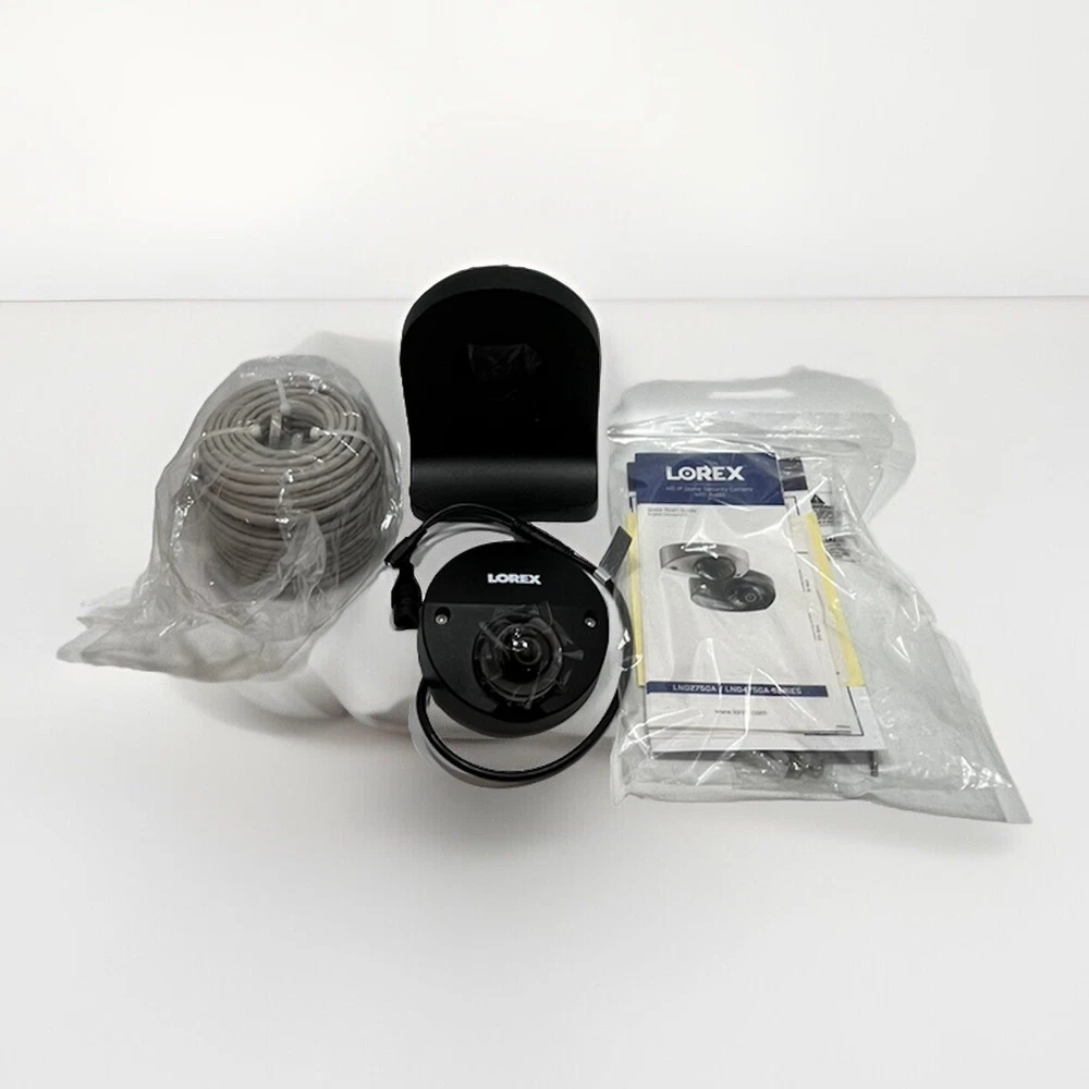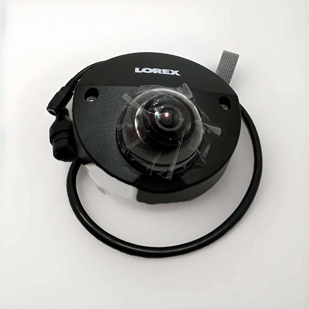 INCLUDES HD IP Dome Security Camera with Audio • Mounting Kit* • Ethernet Extension Cable with Pre-attached RJ45 Cable Gland* • Allen Key* • Wall Mount* Record video and sounds with this Nocturnal security camera from Lorex. Not only will this security camera provide crystal clear 2K quality resolution footage, the built-in microphone will also add a whole new layer of security coverage. Designed to fit seamlessly against walls or ceilings thanks to its unique flat design, this all-black Nocturnal security camera will be highly visible during the day and extremely discreet at night. Long-range night vision, a wide angle lens, and a durable metal housing also makes this security camera a perfect add-on for any IP home or business surveillance system.
