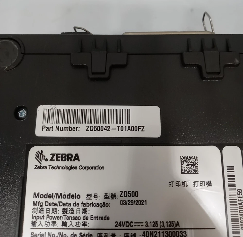 Type:Label PrinterOutput Type:Black & WhiteSeller Notes:“LOT OF 2 Zebra ZD500 DT/Thermal Transfer Label Printer ZD50042-T01A00FZ Same As Pictures”Product Line:Zebra ZTechnology:ThermalConnectivity:Ethernet (RJ-45), Parallel (IEEE 1284), USB 2.0Model:Zebra ZD500MPN:ZD50042-T01A00FZCountry/Region of Manufacture:ChinaBrand:Zebra
