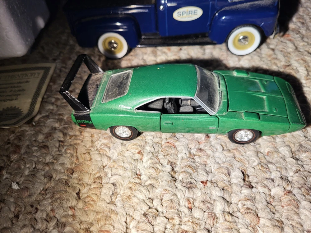 1936 ford pickup, red. New 1948 ford pickup, spire credit union blue. Used 1969 dodge charger, green. Used. Please refer to pictures for condition and details Same day shipping