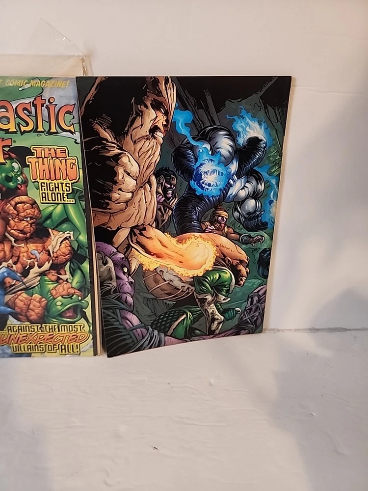 This lot includes three fantastic issues of the Fantastic Four comic book series. The comics feature the adventures of the superhero team, including Human Torch, The Thing, Invisible Woman, Namor, Red Ghost, Silver Surfer, Spider-Man, Mister Fantastic, and Iron Fist. The comics are written by Alan Davis, illustrated by Scott Lobdell, and colored by Salvador Larroca, among other talented artists and writers. The comics are in English, published by Marvel Comics, and are from the Modern Age era (1992-Now). They are boarded and perfect for collectors and fans of the action, superheroes, and adventure genres. The lot does not include signed copies, but it is a great addition to any collection of US Comics, especially for fans of the Fantastic Four team.