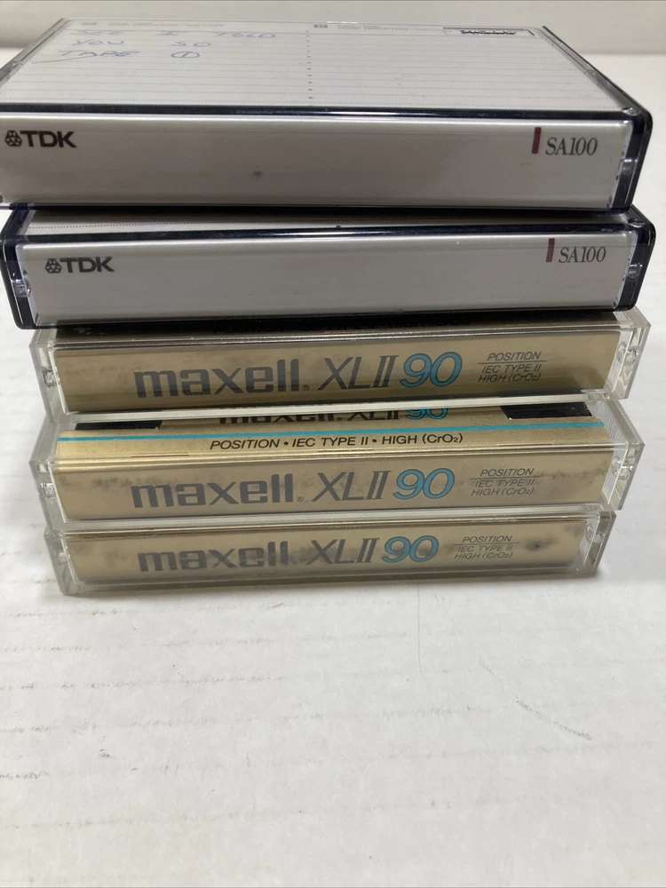 SOLD AS BLANKS LOT OF 5 CASSETTE TAPES 3 - MAXELL XL II 90 TYPE II HIGH BIAS CrO2 2 - TDK SA 100 IEC II HIGH SOLD AS BLANKS - USED PREVIOUSLY