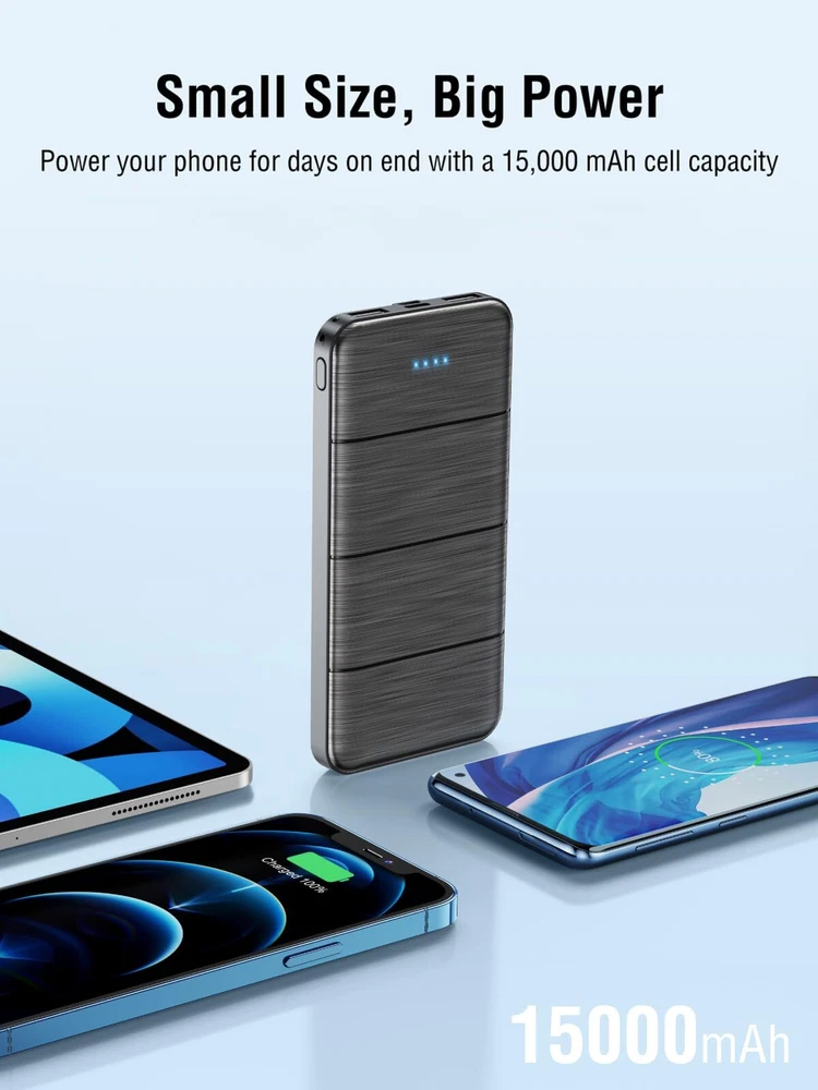 LOVELEDI Portable Charger,Power Bank, 15000mAh 2 USB Power Bank Output 5V3.1A Fa Features: Power Bank has 15000 mAh ultra-high capacity can give you an excellent battery life experience.You don't have to be anxious about your phone battery life during outdoor activities such as hiking. You can happily experience a wonderful trip. Power bank bulit-in Intelliegent Controlling IC can automatically identify and is universally compatible with all products, It switches the corresponding current and voltage to charge the device. Also IC can convert fluctuating current into stable current, It can effectively prevent your power bank overcharge, overvoltage, overcurrent and short circuit.Bring you the safe using experience. Portable Chargers are very compact ,they are not only for portable charging but also around the home making it a favorite for travel.You could benefit from these battery packs When you go out.Allowing you charge mobile devices without having to be tethered to a plug socket. You could get more convenience and happiness from these high-quality power banks. Portable Charger with 5V 3.1A 2 USB Output ports ,which can fast charge 2 devices at the same time.You can share with your companions to get rid of worries about the remaining battery power of your phone. The USB C and Micro USB input ports can fully refill the battery itself in 4-5 hrs at 5V 2.0A.(Note: Type-C port can only input, does not support output) Power bank uses the safe high-density lithium polymer battery module, which is more compact and has a larger battery capacity, It exceeds the traditional Lithium ion battery on safety.The safety of customers is our most concerned about ,Customer satisfaction is our greatest motivation. We sincerely hope that this shopping experience will bring you good memory. Features: Power Bank has 15000 mAh ultra-high capacity can give you an excellent battery life experience.You don't have to be anxious about your phone battery life during outdoor activities such as hiking. You can happily experience a wonderful trip. Power bank bulit-in Intelliegent Controlling IC can automatically identify and is universally compatible with all products, It switches the corresponding current and voltage to charge the device. Also IC can convert fluctuating current into stable current, It can effectively prevent your power bank overcharge, overvoltage, overcurrent and short circuit.Bring you the safe using experience. Portable Chargers are very compact ,they are not only for portable charging but also around the home making it a favorite for travel.You could benefit from these battery packs When you go out.Allowing you charge mobile devices without having to be tethered to a plug socket. You could get more convenience and happiness from these high-quality power banks. Portable Charger with 5V 3.1A 2 USB Output ports ,which can fast charge 2 devices at the same time.You can share with your companions to get rid of worries about the remaining battery power of your phone. The USB C and Micro USB input ports can fully refill the battery itself in 4-5 hrs at 5V 2.0A.(Note: Type-C port can only input, does not support output) Power bank uses the safe high-density lithium polymer battery module, which is more compact and has a larger battery capacity, It exceeds the traditional Lithium ion battery on safety.The safety of customers is our most concerned about ,Customer satisfaction is our greatest motivation. We sincerely hope that this shopping experience will bring you good memory. eBay integration by