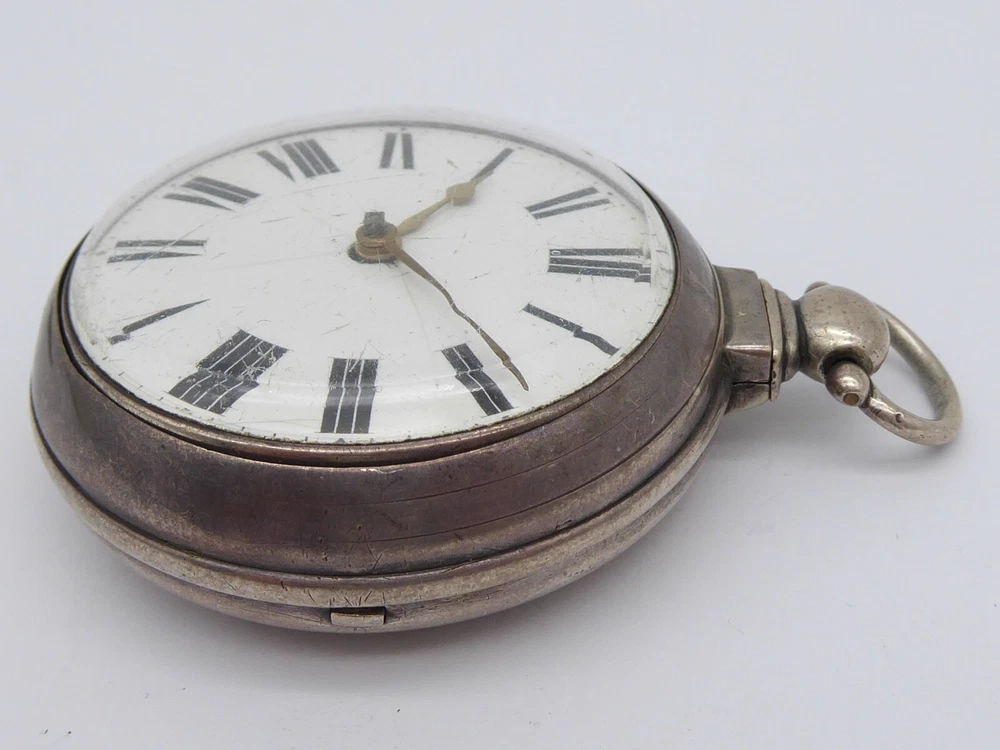 Offered for auction is a lovely antique Victorian solid sterling silver pair cased pocket watch with fuse movement. The inner and outer case with matching hallmarks for Birmingham 1852, makers mark RS. The watch is sold for spares or repairs, it is running well but only when placed face down when picked up the watch will stop. It measures approx. 56 mm wide Thanks for looking, please check out my other items and add me to your favourite sellers for similar items listed every week Please note all items are listed for auction without reserve and with no buy it now prices