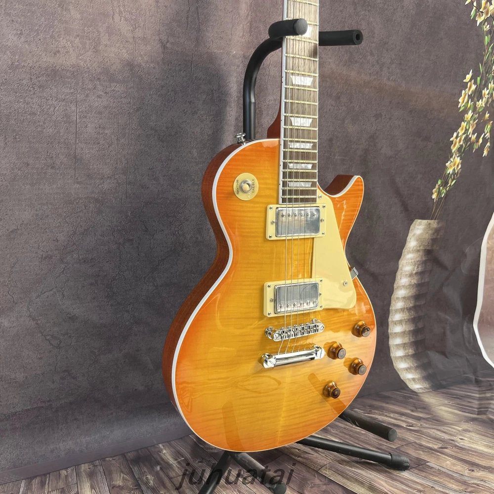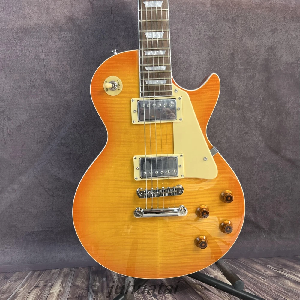 LP Standard electric Guitar Yellow Flame Maple top Mahogany body Chrome hardware