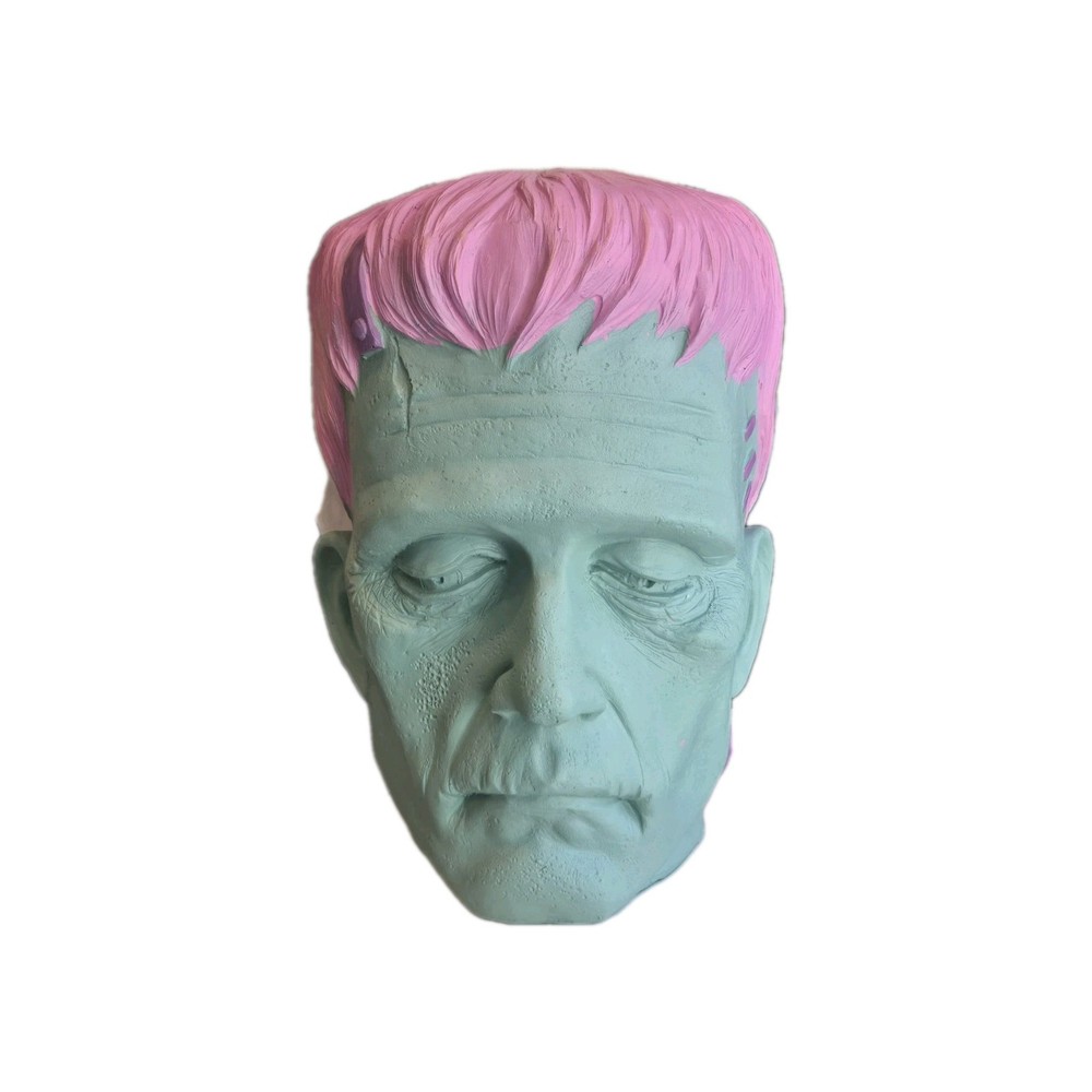 NEW LARGE Pastel Shabby Chic Pink / Green Halloween Frankenstein Spooky Head Condition: New 10 1/2" Tall X 8" Wide X 10" Deep This product is a large Pastel Shabby Chic figurine of a spooky Frankenstein head, perfect for Halloween decor. The green color adds a unique twist to the traditional pink shabby chic aesthetic. The brand "Shabby Chic" signifies a style that is charming and whimsical, making this figurine a fun and festive addition to any home during the Halloween season. (Bin A21) SKU000100448PH