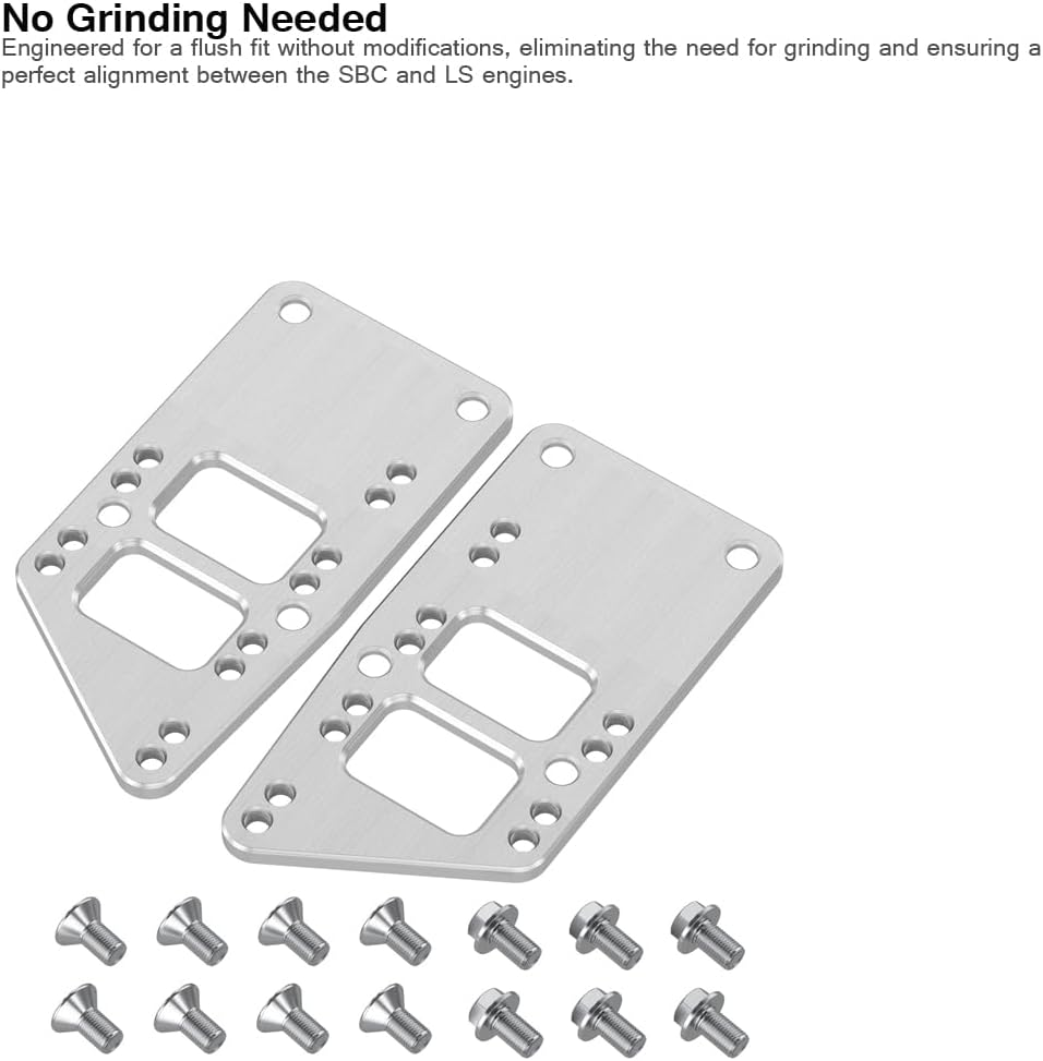 Store New Arrivals Add to Favorite View Feedback Contact LS Swap Motor Mounts Adapter Plates - LS Conversion Adjustable Universal Swap Bracket Small Block,Sbc Vehicle to LS Engine LS1 LS3 LS2 LQ4 LQ9 LS6 L92 L99 L33 LR4 Description Item model number MKLSMT2 Part Number MKLSMT2 Batteries Required? No Finish Polished Mounting Type Bolting Item Package Quantity 1 Color Silver Item Depth 5 inches Brand Moker Material Aluminum Country of Origin China Item Weight 2.2 Pounds Batteries Included? No Manufacturer Moker Finish Type Polished Package Dimensions 9.09 x 4.88 x 1.65 inches Included Components 8)Flat Head Bolts(6)Flange M10-1.5 Bolts Wide Compatibility: Designed for swapping a Small Block Chevy (SBC) engine to an LS engine, including LS1, LS2, LS3, LS6, LQ4, LQ9, L92, L99, L33, and LR4. Perfect for bolting early Chevy 3-bolt motor mounts to late-model LS blocks with 4-bolt patterns. No Grinding Needed: Engineered for a flush fit without modifications. A seamless solution for adapting motor mounts from LS to SBC setups. Adjustable Design: Features 4 adjustable positions to accommodate various headers, oil pans, steering boxes, and other modifications, offering maximum versatility for custom builds. Premium Quality Material: Made of high-quality aluminum for durability, precision, and long-lasting performance, surpassing the quality of other LS conversion plates. Complete Kit: Includes 2 adapter plates, "D" is Drivers side, "P" is Passenger side.8 flat head bolts, and 6 flange M10-1.5 bolts (plates are M10 threaded). Backed by an 18-month warranty and friendly customer support for a worry-free purchase. Product Description Swap SBC to LS with Ease Looking for a seamless and hassle-free solution to adapt your Small Block Chevy (SBC) engine to a late-model LS engine? Look no further! This high-quality adapter plate is designed to swap a SBC engine into an LS block with ease, supporting a wide range of LS engine types including LS1, LS2, LS3, LS6, LQ4, LQ9, L92, L99, L33, and LR4. Whether you're upgrading from an early 3-bolt motor mount to a late-model 4-bolt LS block, this adapter plate ensures a perfect fit without any grinding or modifications. Why Choose This Adapter Plate? No Grinding Needed: Engineered for a flush fit, eliminating the need for any modifications or grinding. 4 Adjustable Positions: Easily accommodate various headers, oil pans, steering boxes, and other modifications, offering maximum flexibility for custom builds. Premium Quality Material: Constructed from durable, high-strength aluminum for superior durability, precision, and long-term performance. Easy Installation: Comes with 2 adapter plates (D and P sides), 8 flat-head bolts, and 6 flange M10-1.5 bolts, ensuring a quick and stress-free installation. Whether you're working on a classic restoration, a custom build, or simply upgrading your engine setup, this adapter plate is the perfect solution for a quick swap from a SBC to an LS engine. ABOUT US We offer the best prices around on high quality products. Our E-store includes media such as books, movies, music and games while offering electronics, toys, sporting apparel, clothing, tools, general home, garden items and more. SHIPPING We are always working hard to ensure your package arrives as soon as possible. Please understand that some factors like weather, high postal traffic, and the performance of shipping companies are outside of our control. We offer free shipping to the lower 48 states and ship within 2 business days of payment, usually sooner. We do not accept P.O. Boxes. Please provide a physical address. RETURNS We offer a 30-Day Return Policy on items which you are not completely satisfied with. You have the option for a full-refund or an exchange of the item. No returns are available on items shipped outside of the USA. PAYMENT We accept PayPal. CONTACT US This page content is yet to come Please ad us to your favorite seller and visit again later Thank You CUSTOMER SATISFACTION We try our very best to make sure every customer is completely satisfied. If there's a problem, message us! We're happy to help.