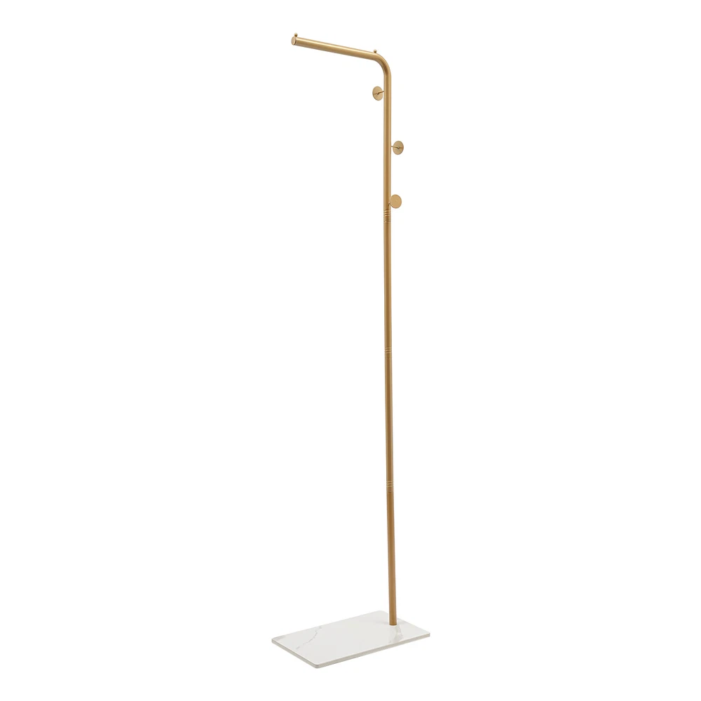 L-shape Coat Rack Hat Bag Stand Tree 3 Hooks Clothes Hanger Umbrella Holder Rack Description Are you still worried about finding a place to hang your clothes? Our coat rack is designed for hanging clothes, bags, scarves and other items in an organized manner. It is made of high-quality iron and slate materials with a high-temperature baking paint process , which is not only beautiful but also durable. It can effectively help you hang and organize all kinds of clothes and solve storage problems in small homes. Come and bring it home! Key Features Sturdy and Durable: This product is made of high-quality iron and slate materials with a high-temperature baking paint process, which is sturdy and wear-resistant , and has a long service life. Fashionable Style: The sleek look, classic gold color and simple lines make for a stylish and elegant product that will go well with your existing furniture and add a splash of color to your room. Strong Load-bearing Capacity : The rectangular base and the strong connection between the parts make this product able to withstand a heavy load of about 77.16lbs , so you can use it to store your daily clothes with confidence. Large Capacity: The 3 left and right distributed hooks add hierarchy and avoid stacking of clothes, making it easy for you to access coats, handbags, scarves and jackets (not included). The top shelf allows you to hang your clothes neatly (not included), and the small rounded ends won't let the hangers slide off. The bottom rock base holds your shoes (not included) for more organized storage. Suitable Height: It is high enough (66.93in) to prevent most clothes from touching the floor and getting dirty, so you can hang your pants, long skirts, coats, etc.(not included) with confidence. Easy Installation: The simple structure allows even novice installers to install it quickly and accurately. Effortless Cleaning: Thanks to the smooth surface, simple structure, and open design, you can easily wipe off the dirt on it with a soft cloth. Ideal Gift: With a beautiful appearance and good performance, it would be a wonderful surprise for your wife, mother, daughter, friend, or loved ones. Protective Package: To prevent damage to the product due to bumps in transit, we place foam to protect the product as much as possible. Details 3 Round Head Hooks: They are not only aesthetically pleasing but also prevent clothes from falling off and care for your clothes and hands. Sturdy Base: The rectangular slate base measuring 15.75*9.84in can well stabilize this product and prevent it from tipping over. 9 Foam Pads: They can be taped to the bottom of the base to protect the floor from scratches. Smooth Edge: The rounded and smooth edges not only add to the aesthetics of the product but also improve the safety of use. Application It can be used in hallways, bedrooms, living rooms, bathrooms, entryways, foyers, study rooms, children's rooms, laundry rooms, offices, clothing stores, apartments, hotels, dormitories, etc. It can be used to hang coats, scarves, hats, school bags, handbags, purses, suits, garments and place shoes etc. Specifications Color: Gold, White Style: Modern Material: Iron, Slate Shape: L-shape Process: High-temperature Baking Paint Assembly Required: Yes Mounting Type: Free Standing Total Load Capacity: About 35kg/77.16lbs Number of Hooks: 3 Gross Weight: 3.75kg/8.27lbs Net Weight: 3.5kg/7.72lbs Product Height: 170cm/66.93in Rod Length: 30cm/11.81in Base Size(L*W): 40*25cm/15.75*9.84in Package Size: 51*40*12cm/20.08*15.75*4.72in Package Included 1* Coat Rack 9* Foam Pads All Accessories for Assembly Notes Please note that this product does not include any clothes. Please do not leave the product in the sun or a humid place for a long time, otherwise, it will reduce the service life of the product. Please allow the slight color difference caused by the shooting light and 1-3cm error due to manual measurement, and make sure you do not mind before you order. Payment Delivery details Terms of sales About us Contact us Payment We accept ebay payment 。 Fees such as import duties, taxes are not included in the item price or shipping costs. These charges are the buyer's responsibility. Delivery details Shipping: 2-9 working days to: USA Terms of sales We maintain high standards of excellence and strive for hundred percent customer satisfaction. Feedback is very important to us. We hope that you contact us immediately before you give neutral or negative feedback, so that we can address your concerns. It is impossible to address issues if we do not know about them! About us Your satis faction is our ultimate goal. We work hard to earn your trust and future business. Our certified technicians have tested each item before shipping. The unit comes with 1 year limited warranty on all manufacturing defects. a) If you receive a defective item, you may return it or ask for a discount. Please contact us within 14 days after you receive the package. b) What you returned must be intact and in its original packaging as re? u. Customer is responsible for shipping costs of the returned item. c) We will cover the cost of shipping back t with the shipping rate indicated in the registration page. We will send you a new unit or refund the full payment you paid. Thank you. Contact us Business Hour Business Hour: Monday To Friday: 8:30 AM to 5:00 PM (Beijing China time) Due to time zones, our reply to your questions may not be immediately. But within above working time, we will reply your email within 24 hours. If it's non-workdays, please kindly be patient and wait till Monday. Please contact us with ebay message. Please feel free to contact us if you have any questions. Monday To Friday: 8:30 AM to 5:00 PM (Beijing China time) Due to time zones, our reply to your questions may not be immediately. But within above working time, we will reply your email within 24 hours. If it's non-workdays, please kindly be patient and wait till Monday. Please contact us with ebay m