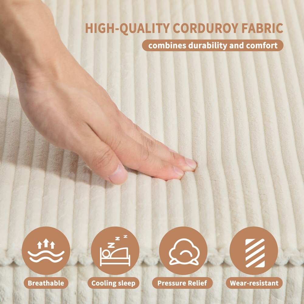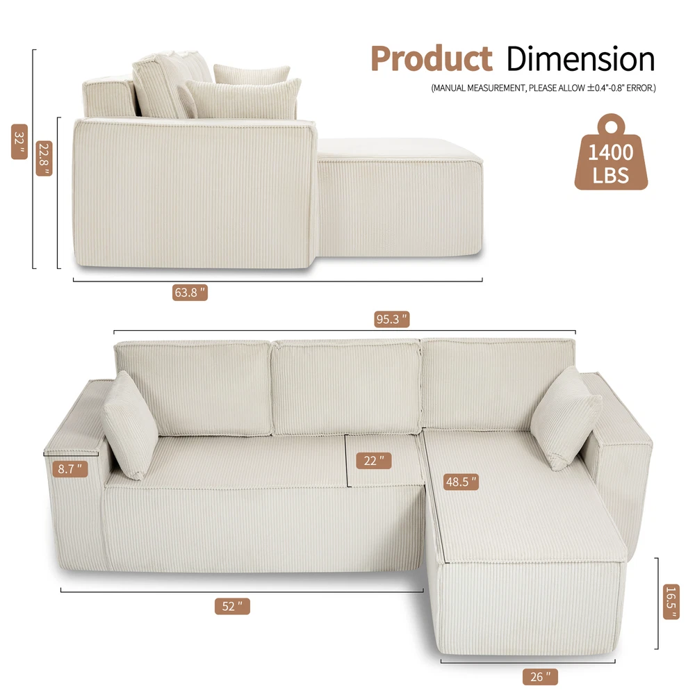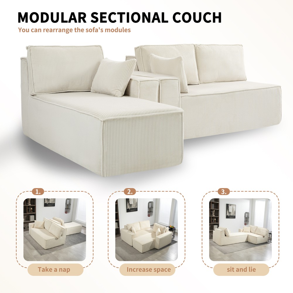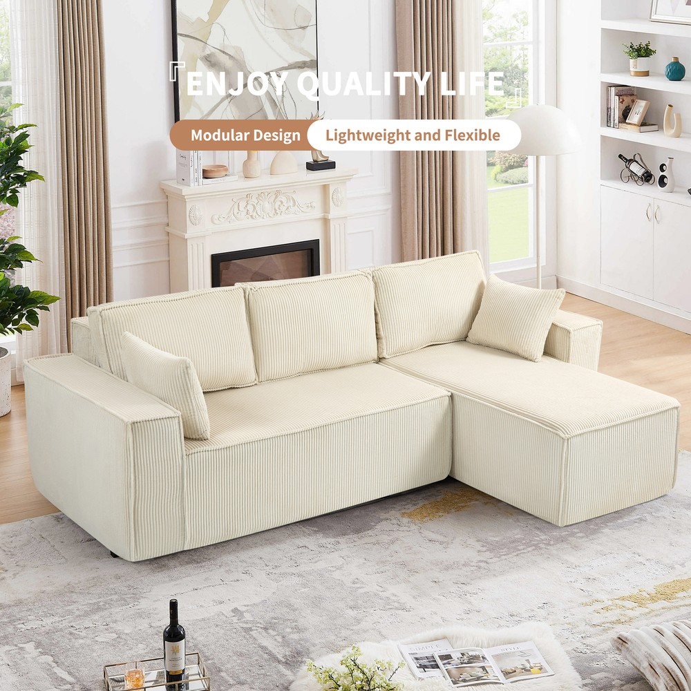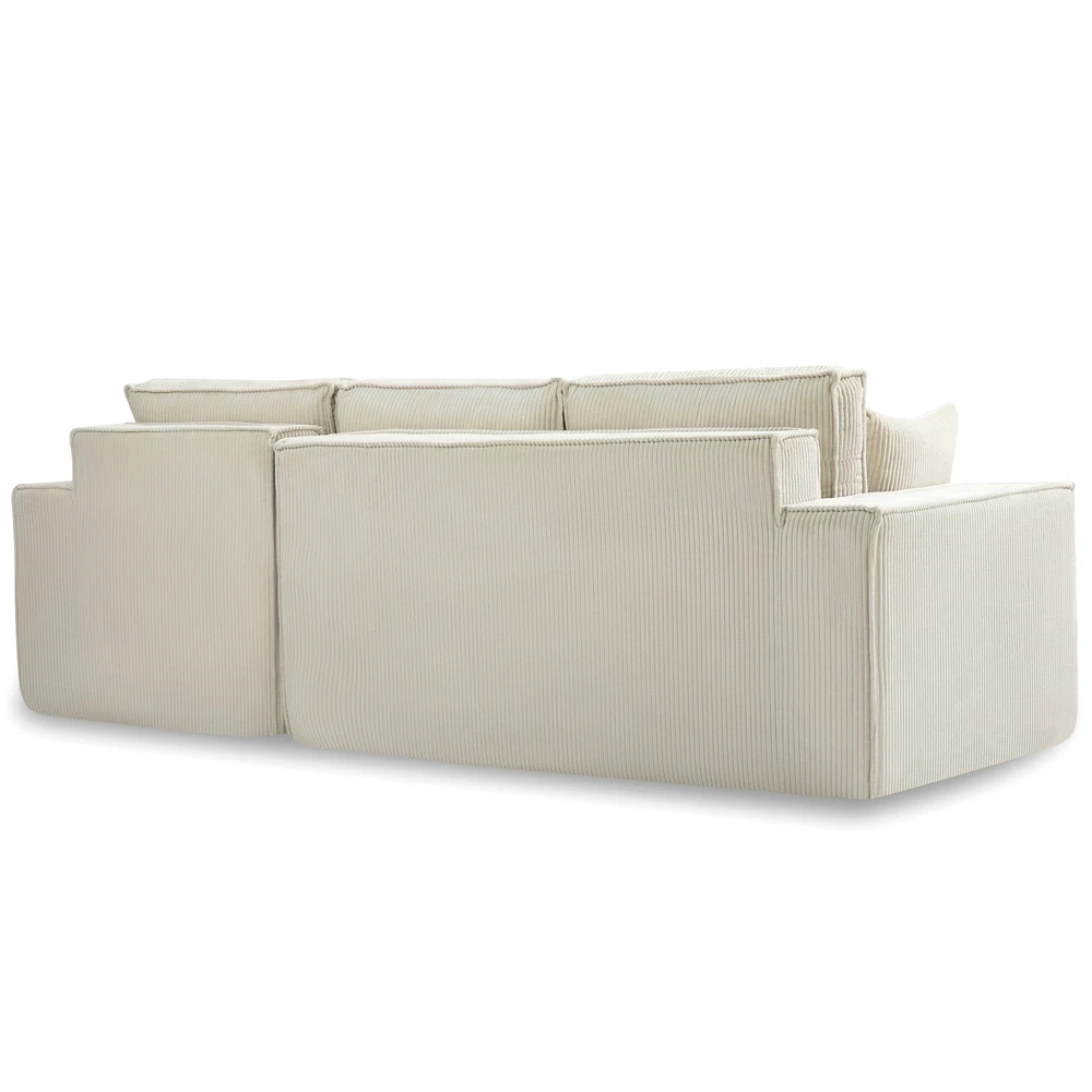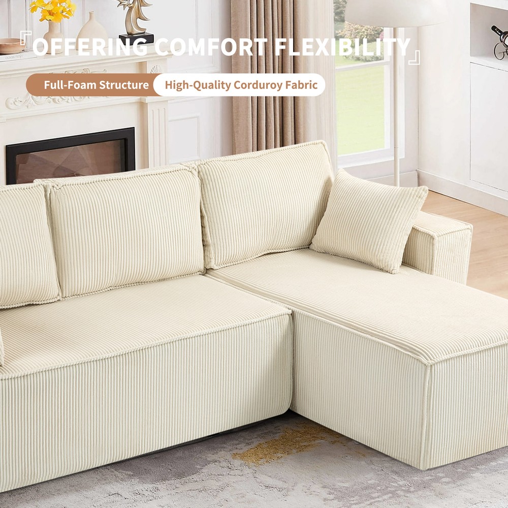This L-shape sectional is a dream! The full-foam structure makes it incredibly soft yet supportive—no sagging even after hours of lounging. The corduroy fabric feels plush and durable, adding a cozy vibe to any space. Perfect for movie nights or napping, it molds to your body for ultimate comfort. Love how easy it is to arrange too!