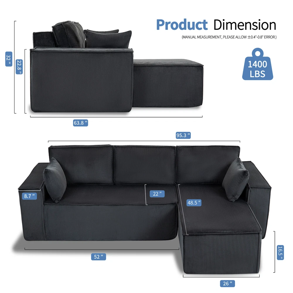 **Full-Foam Structure** : Made entirely from high-density rebound foam, this sofa requires no wooden or metal frame. The structure ensures the sofa is soft yet provides excellent resilience and compression resistance. Even after extended use, the foam retains its original shape and elasticity, preventing sagging. The design of the foam conforms to the natural curves of the body, providing exceptional support and cushioning for a comfortable seating experience. **High-Quality Corduroy Fabric** : The sofa is upholstered in premium corduroy fabric, which combines durability and comfort. Corduroy is known for its high strength and excellent wrinkle resistance, allowing the sofa to withstand everyday use without showing signs of wear quickly. The unique rib... [Video provided] L-Shape Modular Sectional Sofa Couch - Comfy Upholstered Cloud Couch for Living Room - Modern Minimalist Couch,2 PIC Free Combination,No Assembly Required (Gray,Plush Corduroy) **Full-Foam Structure** : Made entirely from high-density rebound foam, this sofa requires no wooden or metal frame. The structure ensures the sofa is soft yet provides excellent resilience and compression resistance. Even after extended use, the foam retains its original shape and elasticity, preventing sagging. The design of the foam conforms to the natural curves of the body, providing exceptional support and cushioning for a comfortable seating experience. **High-Quality Corduroy Fabric** : The sofa is upholstered in premium corduroy fabric, which combines durability and comfort. Corduroy is known for its high strength and excellent wrinkle resistance, allowing the sofa to withstand everyday use without showing signs of wear quickly. The unique ribbed texture of the corduroy not only enhances the visual appeal of the sofa but also adds a soft, plush feel, further elevating the comfort level. **Modular Design** : The modular design of the sofa offers versatile usage possibilities. You can rearrange the sofa's modules to suit your personal preferences and available space, creating different seating configurations such as an L-shaped or I-shaped sofa. This flexibility allows you to customize the sofa to fit your living space and create a fun and adaptable indoor setting. **Lightweight and Flexible** : Compared to traditional framed sofas, the full-foam design makes this sofa lighter, making it easier to move and reposition. It’s perfect for families or apartments seeking a flexible layout and can blend seamlessly with various interior decor styles. **High Safety** : With no hard frame, this sofa eliminates the risk of accidental bumps or injuries, making it especially suitable for homes with children or elderly individuals. **Vacuum-Sealed, No Assembly Required** : The sofa is delivered in a convenient vacuum-sealed, compressed form for easy transportation and handling. Once unpacked, the sofa will expand to its full size, ready for immediate use without the need for assembly. This unpack-and-use design offers unmatched convenience beyond your expectations. **Bonus Cushions and Pillows** : The sofa comes with additional cushions and pillows for optimal lumbar support while seated and neck support while reclining, ensuring comfort in various scenarios. Item Specifics Brand Unbranded Type sofa Color Gray Upholstery Fabric Corduroy Item Length 30.31 in Item Width 18.1 in Item Height 26.77 in About us Dear buyer, Thank you for visiting my store! Our warehouses are located in many regions around the United States. According to the customer's delivery address. Use USPS/UPS/DHL logistics transportation service. Prioritize the best quality logistics solutions to transport packages. Ensure package delivery time, At the same time. Have any after-sales problems, Feel free to contact us. At your service Payment PayPal is our preferred method of payments it's the quickest, easiest and most secure way to pay for your goods or services online. PayPal offers buyer and seller protection should there be a problem. If you do not have a PayPal account, to get started and buy your first item with us is very easy. Simply click on the 'Buy It Now' button and follow the eBay checkout steps. Select PayPal as the payment method you then will be given the chance to enter your card details in to PayPal's secure checkout in order to pay for your order. Shipping 1. Your purchase is shipped directly to you as soon as we have received your cleared payment. 2. Normally all of parcels would be shipped within 3days(From Monday to Saturday). 3. We will send information on eBay or email if the parcel was delayed due to our holiday. 4. We provide three kinds of shipping for choice. Shipping way depend on delivery address. Returns If an unit is received defective, of course we take it back or replace it. If the unit is received as expected, we must charge for our expenses if you want to send it back. We have to charge for the work of handling, retesting and restocking. DESCRIPTION PAYMENT SHIPPING RETURN POLICY CONTACT US Shop Category Store Home Other Hot Item 8 cu. ft. Dual-Wheel Wheelbarrow, Pro-Grade Poly Bucket, Steel Handles, Dual 16 USD 223.90 6 cu. ft. Steel Tub Wheelbarrow with Wooden Handles and Pneumatic Tire USD 113.90 Co-op Cycles DRT 1.1 Mountain Bike USD 419.29 Flextreme 5/8 in. Dia x 50 ft. Black Performance Rubber Garden Hose USD 46.70 5.5 cu. ft. Heaped Poly Smart Plastic Garden Cart USD 70.98 Delivery New List Item Dark Cherry 1pc Sofa Table Open Bottom Shelf Glass Insert Top Cocktail Table Liv USD 395.15 Rustic Style Antique White 1pc SOFA TABLE Open Bottom Shelf Plank Style Table To USD 358.70 Convertible Combination Sofa Sofa L-Shaped Sofa with Storage Cabinet Footstool, USD 380.92 Amonia 5-piece Dining Set, Turned-Leg Dining Table with 4 Tufted Chairs USD 749.26 Amonia 5-piece Dining Set, Turned-Leg Dining Table with 4 Tufted Chairs USD 749.26 Help & Info Payment Policy Shipping Policy Return Policy FAQ About Us [Video provided] L-Shape Modular Sectional Sofa