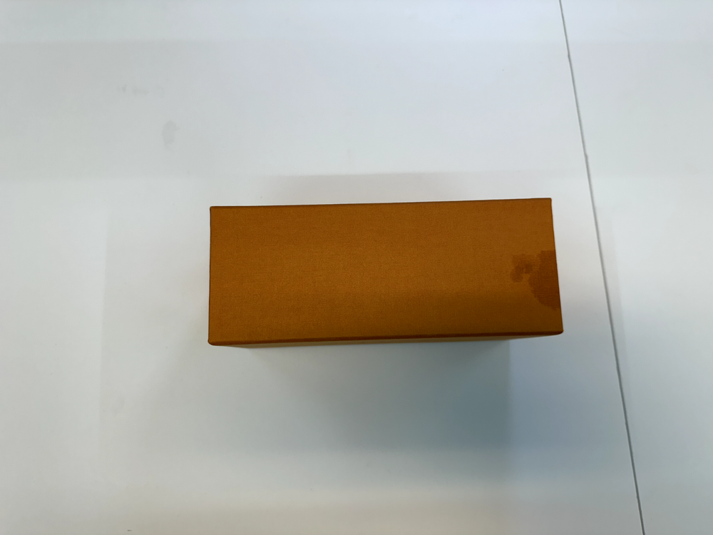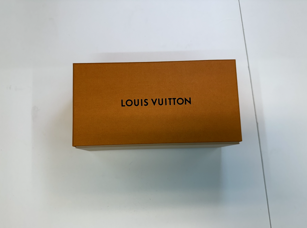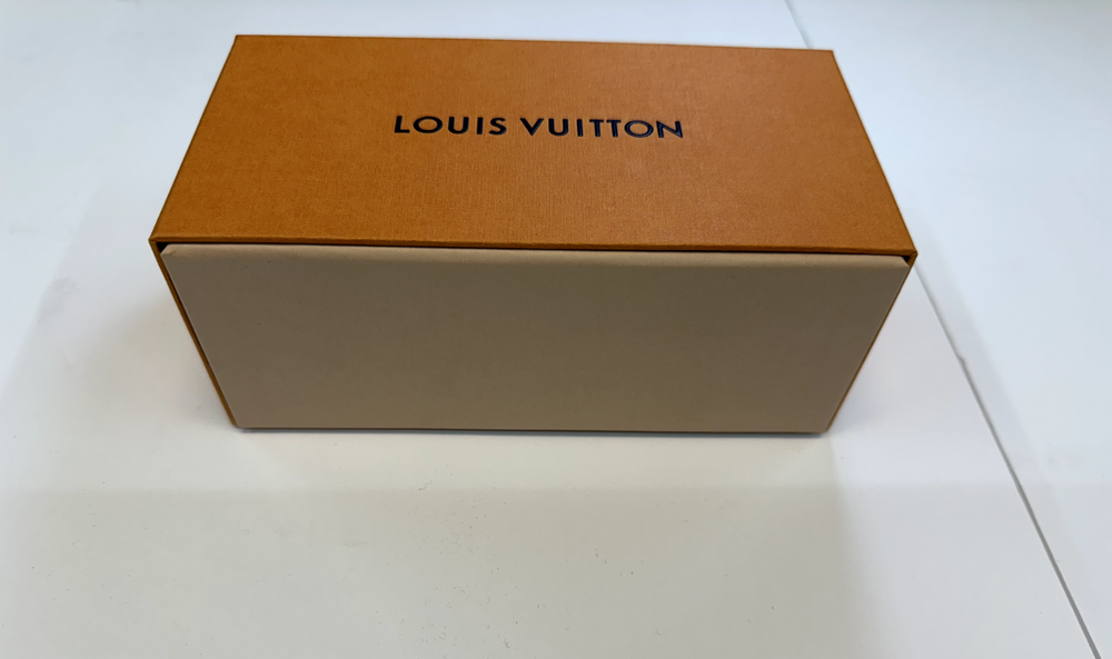 This product is an authentic empty Louis Vuitton gift box with dimensions of 7" x 3.5" x 3". The box is made of cardboard with an orange color and designer theme, making it suitable for all occasions. Perfect for adults looking to store small items or as a stylish gift wrapping supply for special occasions.