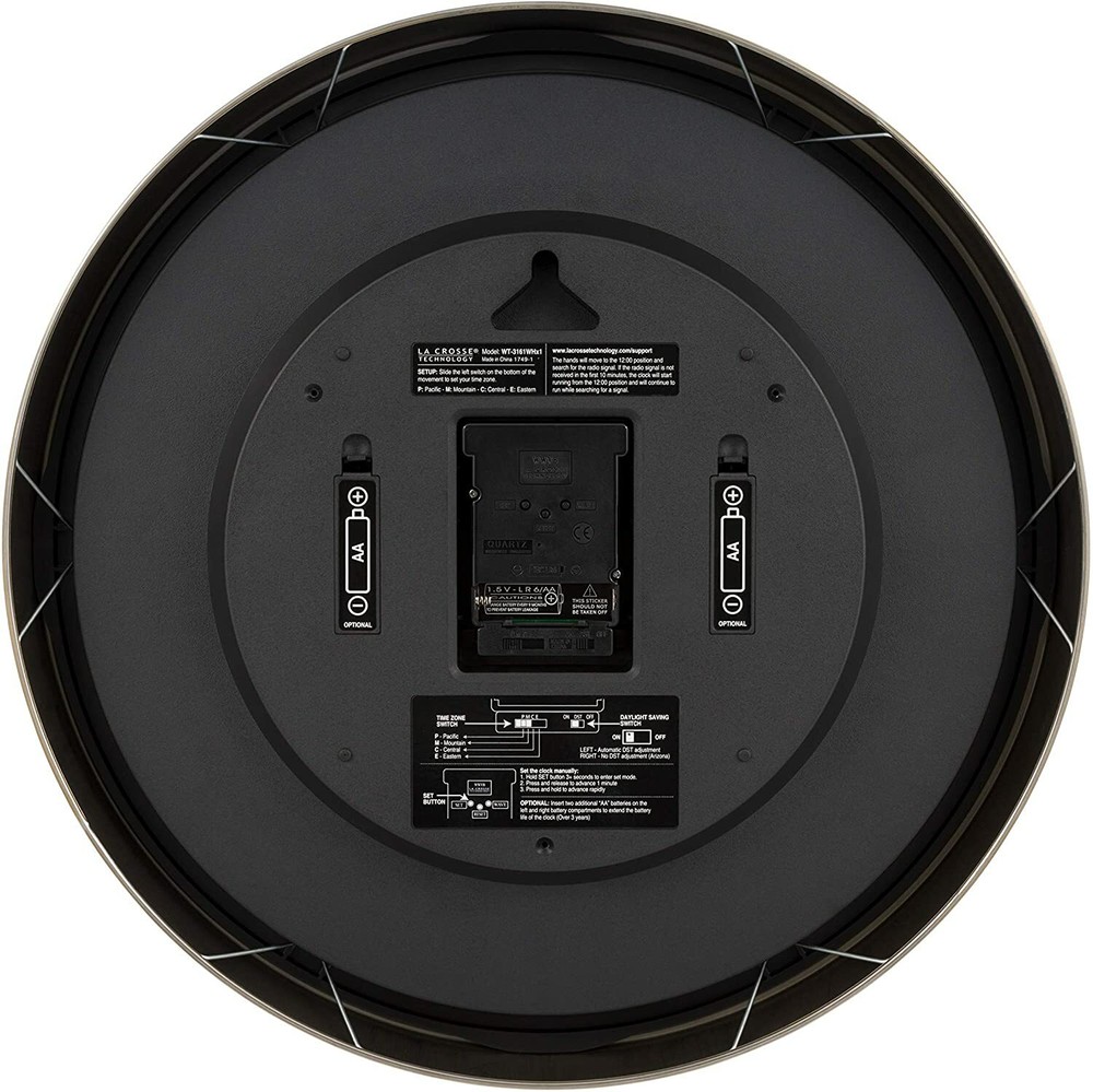 Brand New La Crosse Technology 16-Inch Atomic Clock White Dial 16" Stainless Steel Frame Model #: WT-3161WH Product Features: · Automatically sets to exact time · Accurate to the second · Automatically updates for Daylight Saving Time (ON/OFF option) · 4 Time zones: PT, MT, CT, ET · Simple Operation: Insert 1 AA Alkaline Battery (not included)