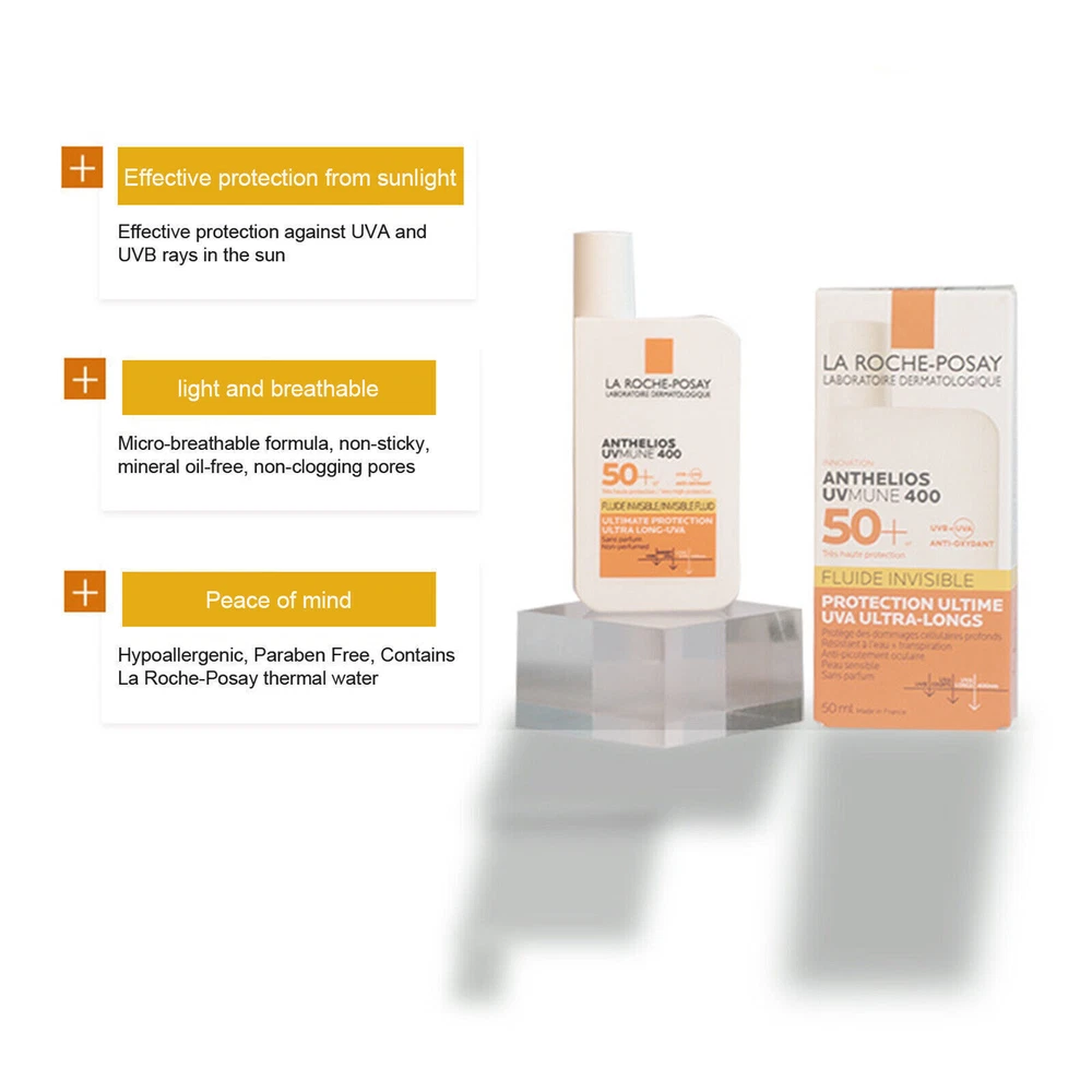 Anthelios Tinted Mineral Ultra Light Sunscreen Fluid has a fast-absorbing, lightweight texture that leaves a tinted matte finish on skin for a healthy glow. 100% mineral sunscreen provides broad spectrum SPF 50 protection, developed specifically for sensitive skin. Recommended for: Face– for all skin types, especially sensitive skin Key Ingredients: Cell-Ox Shield Technology (provides broad spectrum UVA/ UVB Protection + Antioxidants). 100% Mineral Formula with Titanium Dioxide. Dermatologist Tested for Safety Allergy Tested Oil-Free/Non-Comedogenic Suitable for Sensitive Skin Paraben Free Available in two formats: Tinted Water Resistant 40 Minutes