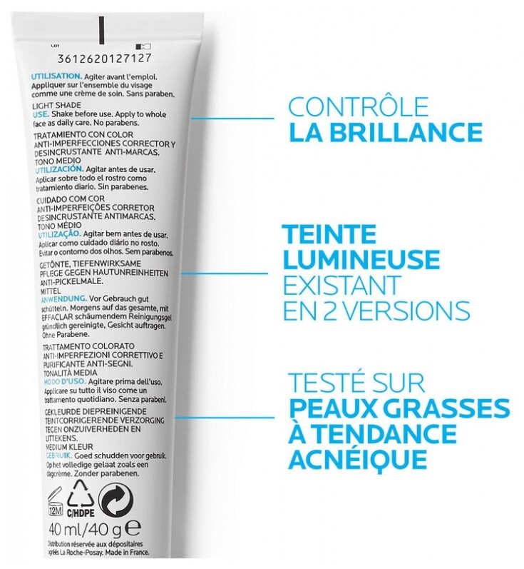 La Roche-Posay Effaclar Duo (+) Unifiant 40ml - Colour: Light is a tinted care anti-imperfections for oily skins prone to acne. This tinted care unclogs the pores, corrects the imperfections while matifying and unifying your skin. It attenuates the imperfections and the red marks in order to unify instantly your face. After some days of use, the imperfections are reduced, and after some weeks, the pores are unclog, the skin texture is refined, the brightness are controlled. Formulated with Paraben free.