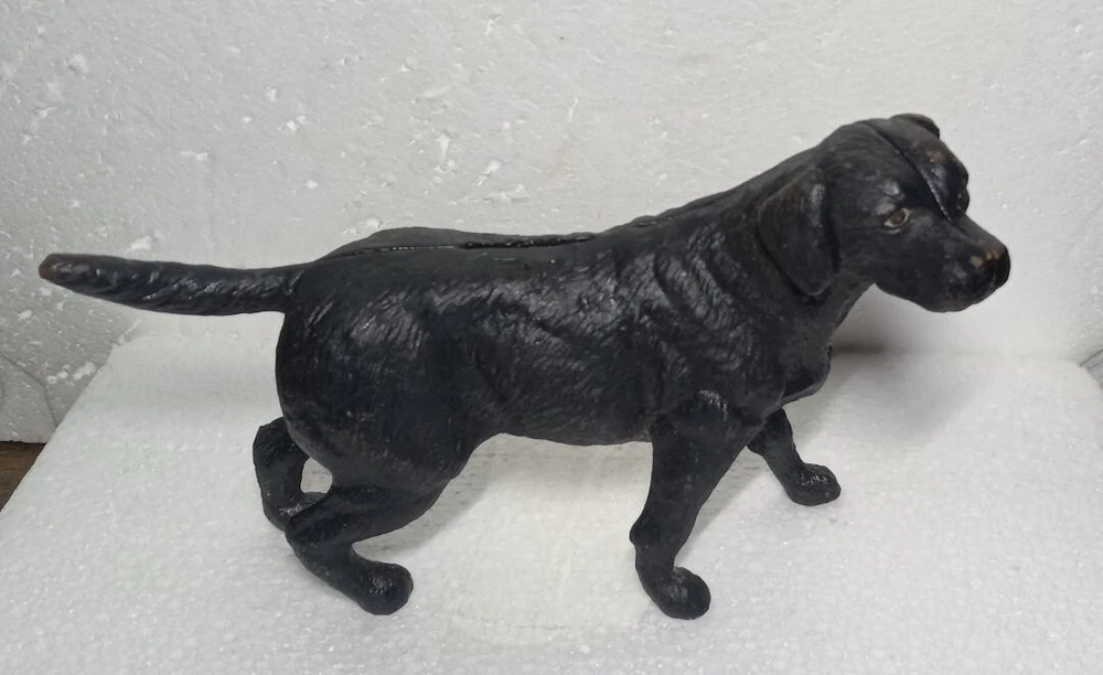 Cast Iron Lab Dog Bank Measures 8.5 Inches Long UpSt F122TT