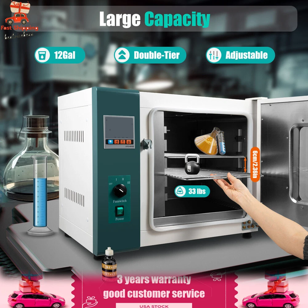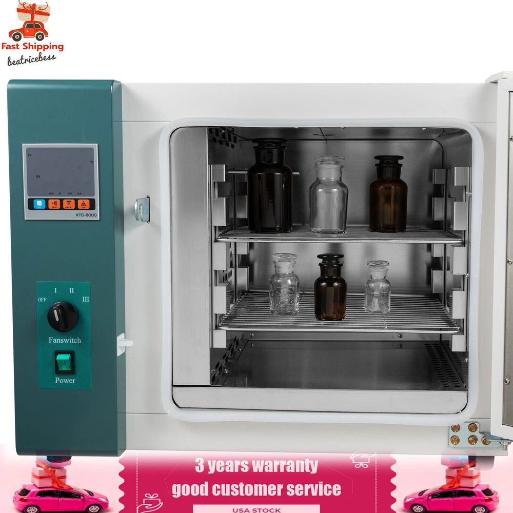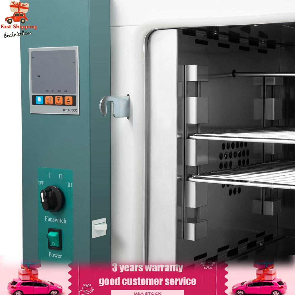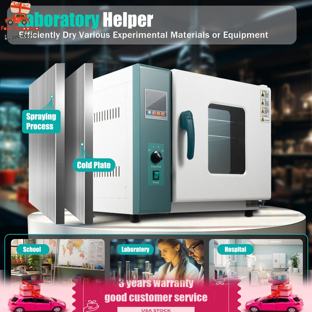 Specifications Model: 101-0AB Material: Cold Plate, Stainless Steel Color: White, Green Style: Modern Surface Treatment: Spraying Assembly Required: No Door Style: Side-open Door Control Type: Button Control Power: 1000W Voltage: 110V Capacity: 45L/12Gal Temperature Range: RT+10°C~300°C/RT+18°F~572°F Tray Maximum Loading: 15kg/33lbs Tem. Resolution: 0.1°C/0.18°F Tem. Fluctuation: ±1°C/±1.8°F Gross Weight: 36.35kg/80lbs Net Weight: 32.25kg/71lbs Tray Spacing: 6cm/2.36in Tray Size: 32.5*33.5cm/12.8*13.18in Window Size: 19*24.5cm/7.48*9.64in Product Inner Size: 34*34*35cm/13.38*13.38*13.78in Product Size: 46.5*65*49.5cm/18.3*25.6*19.48in Package Size: 58*60*73.5cm/22.83*23.62*28.93in welcome to beatricebess Description Description Precision experiments have higher requirements for materials and instruments, especially in temperature control. When you need to deal with a cluttered and large amount of materials and instruments that need to be dried but are at a loss, it means you need our horizontal electric blast drying oven! The drying oven designed specifically for laboratory situations can provide you with precise temperature, uniform drying, and sufficient capacity. With it behind your back to help you run errands, you can finally devote more energy to scientific experiments! Key Features Laboratory Helper: With its help, you can efficiently dry various experimental materials or equipment to their ideal state, providing unparalleled convenience for your work. Uniform Heating: It can set the temperature to a maximum of 572°F (minimum 18°F higher than room temperature), adapting to various needs such as drying, heating, reheating, etc. The air circulation promoted by natural convection, combined with a separate fan switch, makes the material dry faster and more evenly. Easy to Operate: You only need to press the button below the display screen to set the temperature and time, which is more convenient and fast, eliminating the short board of touch screen method that cannot get water on your hands. Large Capacity: This 12Gal double-tier drying oven, combined with 2 adjustable trays that can bear a weight of 33 lbs each, allows you to dry more materials or items at once, making a large number of high-performance materials for the laboratory, thereby saving time and improving efficiency. Intelligent Temperature Controller: The digital display PID temperature controller has functions such as timing, over-temperature alarm indication, temperature deviation correction, and temperature self-tuning control. Good Material: The shell is processed and formed with high-quality cold plates treated with spraying technology. The stainless steel inner liner can withstand high temperatures well, ensuring stable and long-term operation. Low Noise: The hot air circulation system adopts a low-noise self-cooling fan, which will not produce more noise during the drying process, avoiding interference with your work or rest. Extensive External Connection: You can also install additional functions such as LCD instrument panel, programmable instrument panel, printer, 485 interface, USB storage, SMS alarm, etc. according to your actual needs (all excluded). Details Observation Window: A large double-tier tempered glass observation window makes it easy to observe changes in the items inside the box. Anti-slip Feet: The anti-slip feet can effectively maintain the stability of the machine and prevent the desktop from being scratched. Drainage Hole: The top drainage hole can quickly remove internal moisture and maintain a good drying effect. Sealant: A new type of synthetic silicone sealant with a beautiful appearance, and excellent sealing performance can operate at high temperatures for long periods. Heat Dissipation Holes: Double-row heat dissipation holes can quickly exhaust the hot air during operation, ensuring long-term stable operation. Application This device is suitable for industrial and mining enterprises, schools, research institutes, pharmaceutical and health industries, laboratories, and other units to carry out drying, baking, wax melting, heat treatment, and other work through a hot air circulation system. Specifications Model: 101-0AB Material: Cold Plate, Stainless Steel Color: White, Green Style: Modern Surface Treatment: Spraying Assembly Required: No Door Style: Side-open Door Control Type: Button Control Power: 1000W Voltage: 110V Capacity: 45L/12Gal Temperature Range: RT+10°C~300°C/RT+18°F~572°F Tray Maximum Loading: 15kg/33lbs Tem. Resolution: 0.1°C/0.18°F Tem. Fluctuation: ±1°C/±1.8°F Gross Weight: 36.35kg/80lbs Net Weight: 32.25kg/71lbs Tray Spacing: 6cm/2.36in Tray Size: 32.5*33.5cm/12.8*13.18in Window Size: 19*24.5cm/7.48*9.64in Product Inner Size: 34*34*35cm/13.38*13.38*13.78in Product Size: 46.5*65*49.5cm/18.3*25.6*19.48in Package Size: 58*60*73.5cm/22.83*23.62*28.93in Package Included 1*Horizontal Electric Blast Drying Oven 1*English Manual All Accessories for Assembly Notes 1. Please carefully read the manual and strictly follow the precautions to have a better experience. 2. Please allow the slight color difference caused by the shooting light and 1-3cm error due to manual measurement, and make sure you do not mind before you order. Note: The door is not completely tight to the cabinet because of the thick sealing strip. Generally, the door is parallel to the cabinet with a significant gap between them, which is normal. Payment Delivery details Terms of sales About us Contact us Payment We accept ebay payment 。 Fees such as import duties, taxes are not included in the item price or shipping costs. These charges are the buyer's responsibility. Delivery details Shipping: 2-9 working days to: USA Terms of sales We maintain high standards of excellence and strive for hundred percent customer satisfaction. Feedback is very important to us. We hope that you contact us immediately before you give neutral or negative feedback, so that we can address your concerns. It is i
