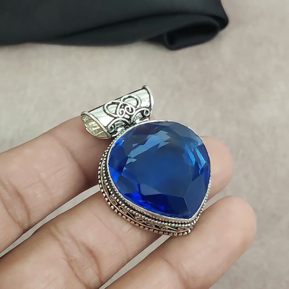 Closure:Same As PictureColor:SilverSetting Style:BezelStyle:PendantNumber of Gemstones:1Country of Origin:IndiaMaterial:GemstoneChain Type:N/AMain Stone Color:BlueMain Stone Creation:Lab-CreatedDiamond Color Grade:N/ACut Grade:N/ATotal Carat Weight:10 carat and aboveBase Metal:Sterling SilverCertification:N/AColored Diamond Intensity:N/ASecondary Stone:N/AMetal:Sterling SilverFeatures:HandmadePendant Shape:Same As PictureNecklace Length:4.2"Theme:Beauty, Bohemian, Ethnic, Halloween, Love, NatureCollection:HandmadeMain Stone:Blue SapphireMetal Purity:925Diamond Clarity Grade:N/APendant/Locket Type:Same As PictureOccasion:Anniversary, Birthday, Christening, Christmas, Engagement, Father's Day, Graduation, Mother's Day, Valentine's Day, WeddingNumber of Diamonds:N/AMain Stone Treatment:Not EnhancedType:PendantMain Stone Shape:PearBrand:HandmadeCountry/Region of Manufacture:India