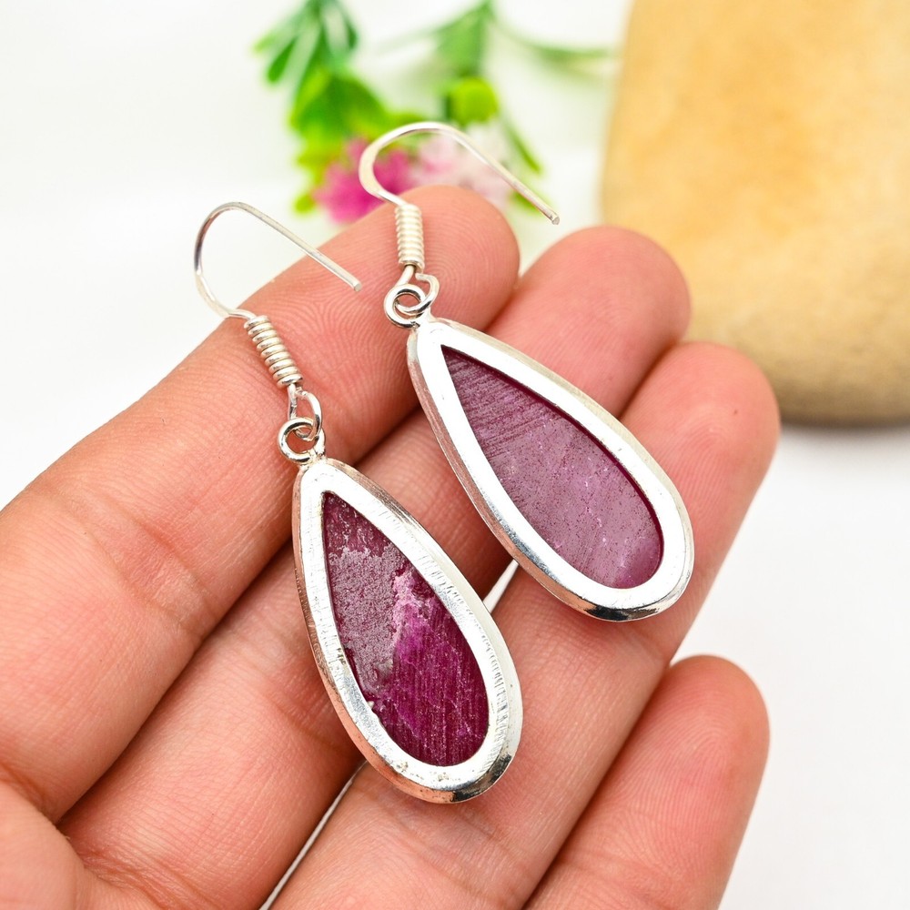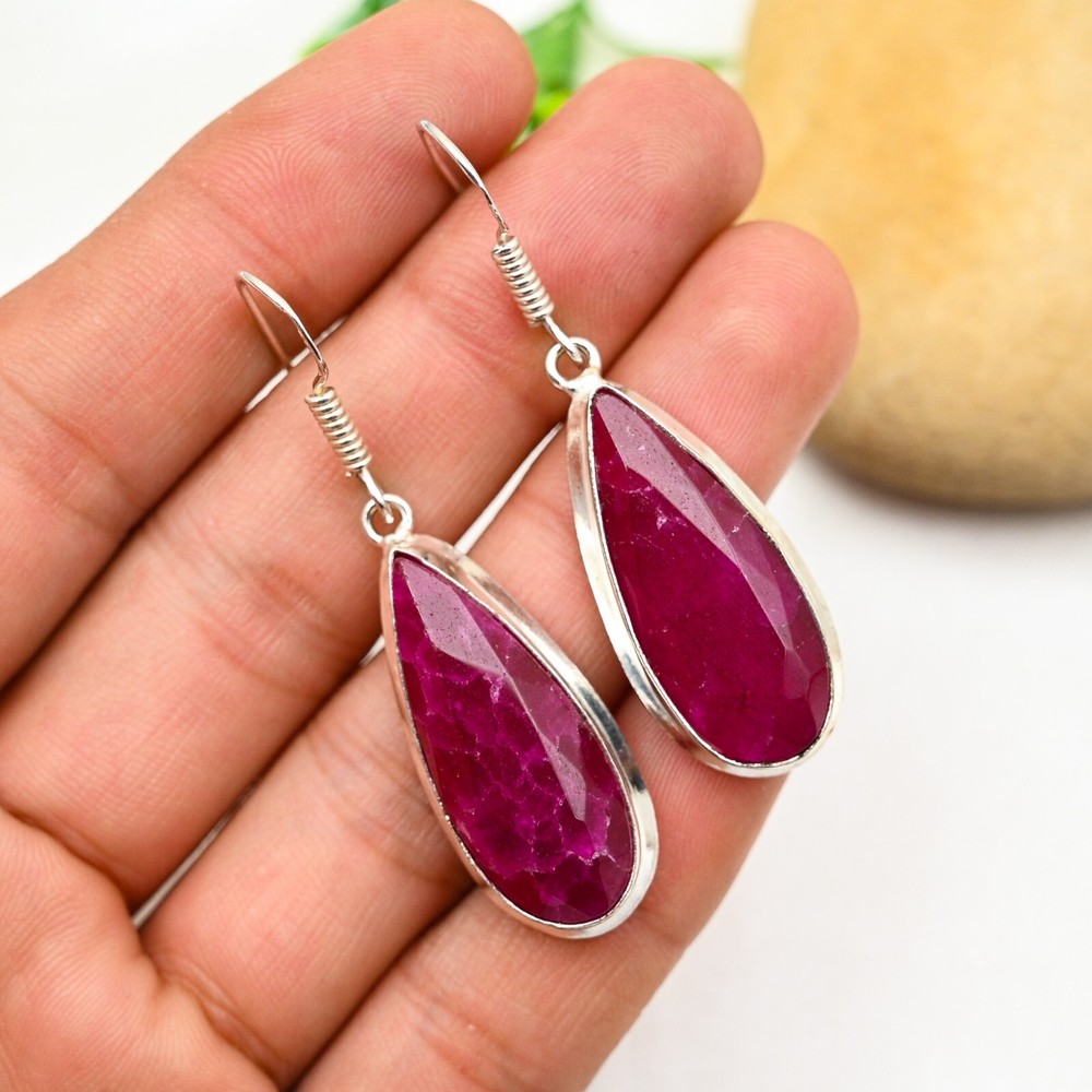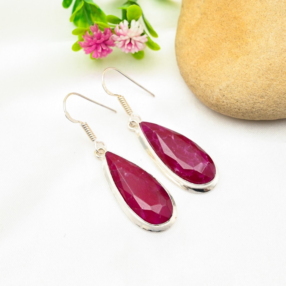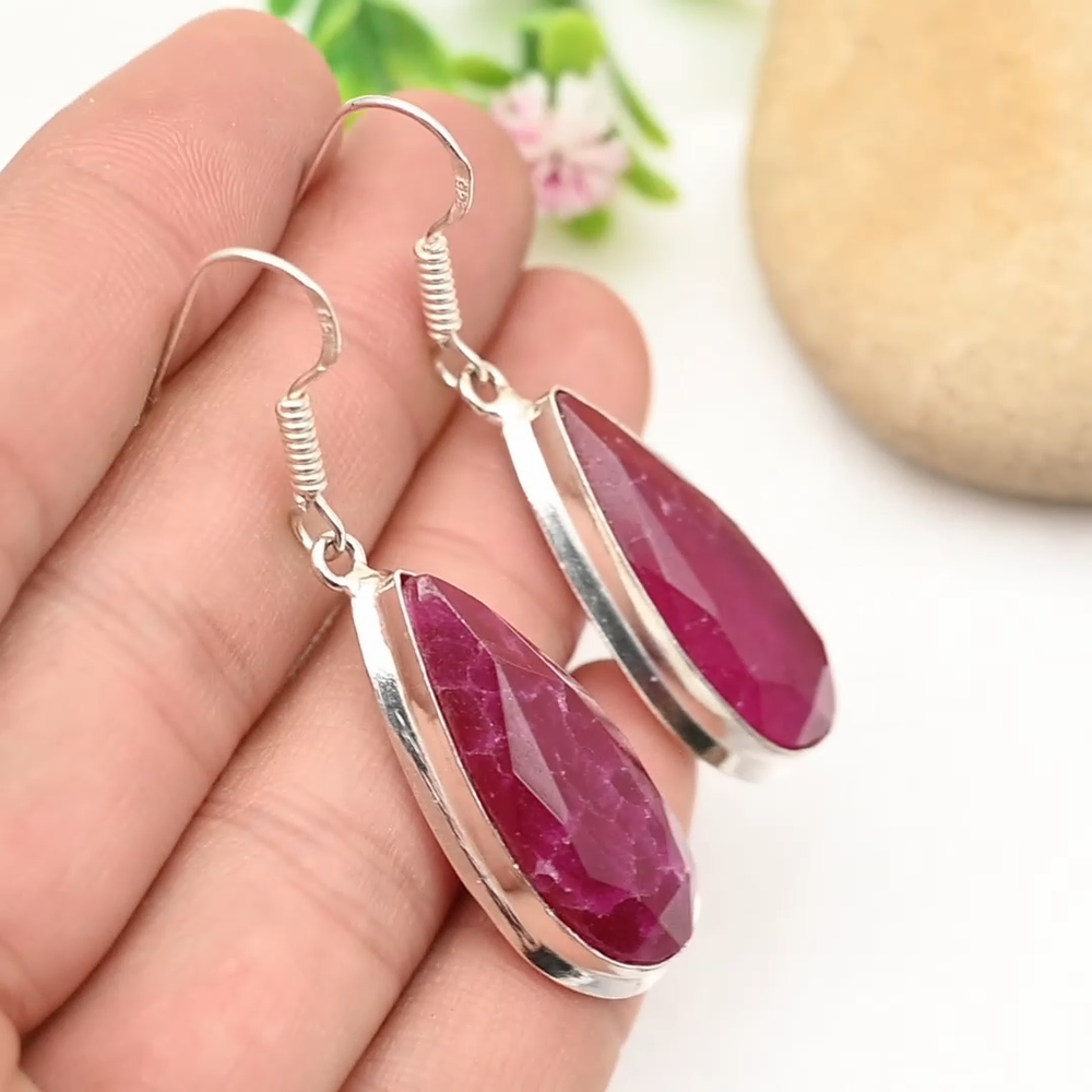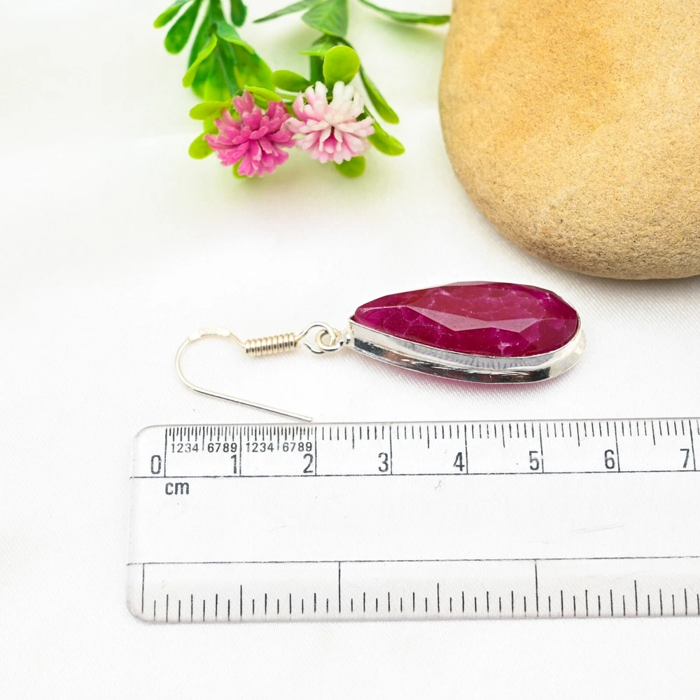 Main Stone Creation:UnknownNumber of Gemstones:2Color:SilverType:EarringsSetting Style:BezelMetal Purity:925Occasion:Anniversary, Birthday, Christmas, Engagement, Father's Day, Mother's Day, Valentine's Day, WeddingTotal Carat Weight:10 carat and aboveSecondary Stone:RubyEar Area:LobeNumber of Diamonds:N/AMain Stone Shape:PearCut Grade:ExcellentColored Diamond Intensity:N/AMetal:Sterling SilverTheme:Beauty, Bohemian, Ethnic, Halloween, LoveMain Stone Color:RedMain Stone:RubyMain Stone Treatment:Not EnhancedBase Metal:Sterling SilverCertification:N/ACollection:HandmadeDiamond Color Grade:N/AShape:N/ABrand:HandmadeItem Length:2.16 CmClosure:HookMaterial:Stone, GemstoneStyle:Dangle/DropCountry of Origin:IndiaDiamond Clarity Grade:N/ACountry/Region of Manufacture:India