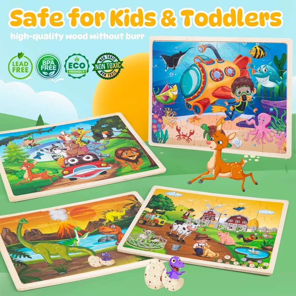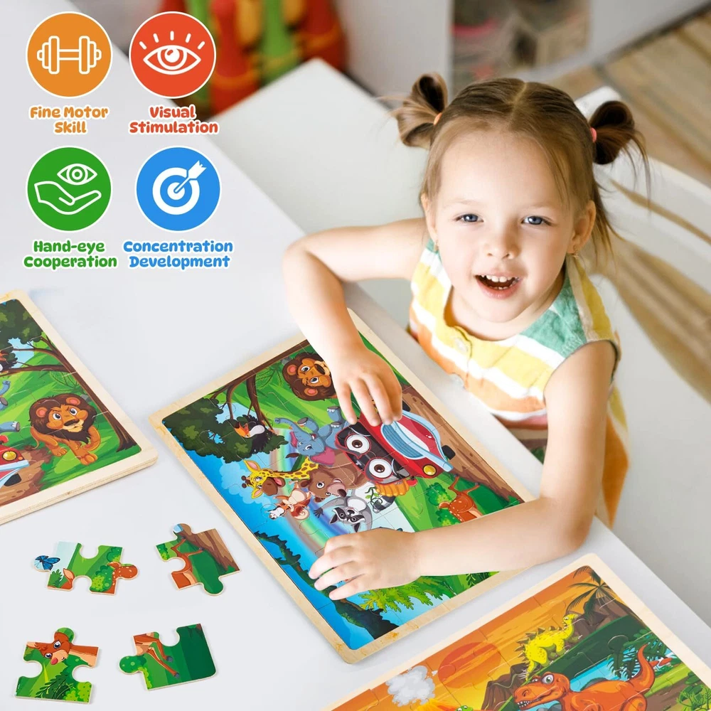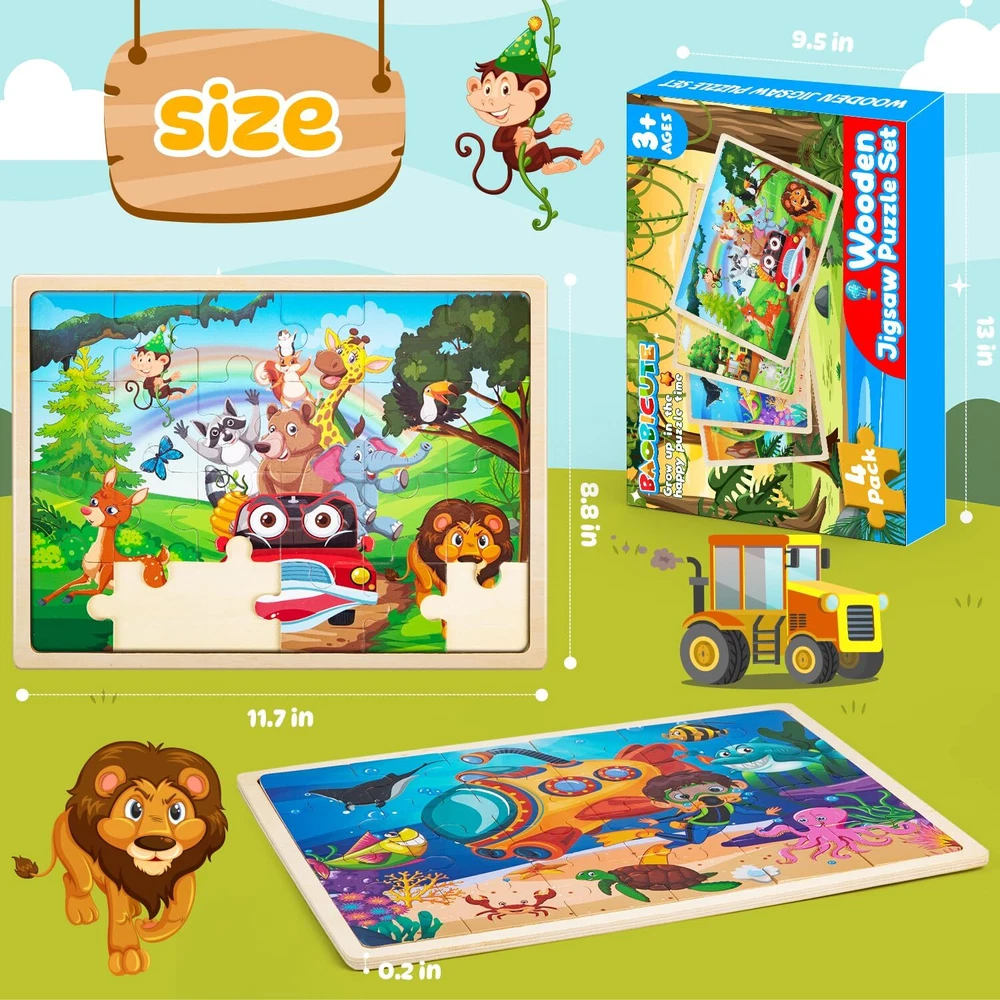 Labeol Toddler Wooden Puzzles for Kids Ages 3-5, 24 Pieces Wood Puzzles for Toddlers 2-4 Preschool Educational Brain Teaser Puzzles Boards Toys Gift for 3 4 5 6 7 8 Years Old Boys Girls 1 VIVID WOOD PUZZLES TOYS FOR KIDS: These wooden jigsaw puzzles set contains 24 durable and colorful wooden puzzles pieces and these pieces can fit together perfect and smoothly with fine cutting to display a vivid zoo animal world. Kids will have the endless fun building the different animal world DURABLE & SAFE WOODEN MATERIALS: These wooden puzzles for kids toddlers are made of high quality wood materials and we adopt fine cutting techniques, the edges of each kids wooden puzzles pieces are carefully polished. Smooth surface and edges ensures no accidental scratches so that kids can use and play it safely. The durable wooden puzzles for toddlers 3-5 can be used repeatedly for a long time STURDY WOODEN TRAY& CLEAR REFERENCE PICTURE: Each wooden puzzles for kids toddlers have a wooden frame to help kids keep the jigsaw puzzle pieces in place and there is a clear reference picture underneath each wooden puzzles, which can guide kids where to place and easy for kids to complete the wooden jigsaw puzzles so that kids can get a great sense of achievement GREAT EDUCATIONAL PUZZLE TOYS: These wooden jigsaw puzzles for kids ages 3-8 can help kids train their imagination, develop eye-hand coordination, problem-solving and spatial reasoning skills while kids enjoy the wooden puzzles games. It can also keep children away from electronic devices and enhance parent-child interaction PERFECT GIFT IDEA FOR KIDS: The kids wooden puzzles toys are ideal gift choice for birthday, Christmas, Thanksgiving, Easter, Preschool and kindergarten opening and other important days. These toddler wooden puzzles set with the exquisite box is very suitable for kids ages 3 4 5 6 7 8 boys and girls to play indoor and outdoor. You can send the gift to the kids of your family or friends as a lovely surprise! Shipping from the USA All of our products are shipped from the USA, ensuring quick delivery to your destination. Payment We offer the following payment methods: PayPal, credit card, bank transfer, and eBay's secure payment system. Free Shipping & Free Returns Shipping within the USA is FREE. Additionally, any return is absolutely free for you. Risk-Free Purchase You have the option to return an item within 30 days without any justification. We cover the return shipping costs! Fast Shipping We ship immediately upon receipt of payment. Generally, the package is delivered within 2-3 days in the USA. If it takes longer, we will contact you. Quality and Costs Made in Europe, USA, China No customs fees or additional charges Total satisfaction guarantee Invoice with declared VAT available upon request in .pdf format Feedback Your feedback is very important to us. After you pay for your purchase, you will automatically receive positive feedback from us.