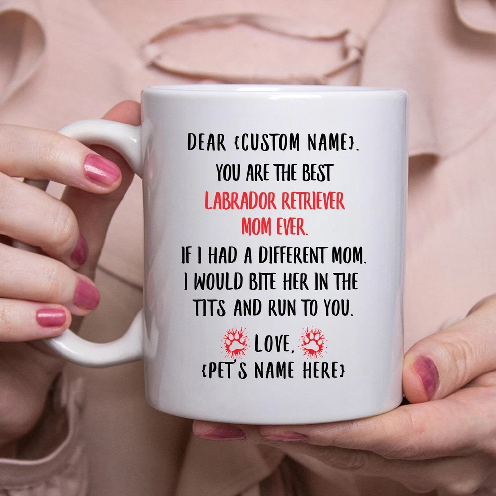 Labrador Retriever Mom Gift Personalized Mothers Day Gift Mug Custom Name Gifts Product Details.. This high quality 11oz. ceramic white mug has a premium hard coat that provides crisp and vibrant color reproduction sure to last for years. Perfect for all hot & cold beverages. The highest quality printing possible is used. It will never fade no matter how many times you wash it. Material: 100% Ceramic. Print both sides. Dishwasher and Microwave Safe. High Gloss + Premium White Finish. Printed in the U.S.A. Personalized & Custom. We support personalized and custom mug to add custom, when placing an order, you can add notes to the "order note" in shipping address section. Also you can contact us directly via message. Shipping Info. Ready to ship in 1 to 2 business days, All products are made-to-order and proudly printed in the United States. Shipped by USPS and DHL, You will receive your order in 5-7 days. Replace & Refund. All products are defective during shipping broken, chipped will be replaced free of charge. You are not satisfied with the product, we will refund 100% money to you. If any other issues arise, please do not hesitate to message, we would be more than happy to assist you.