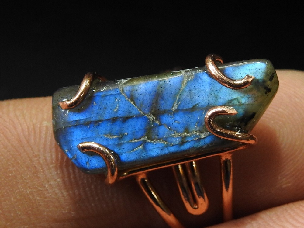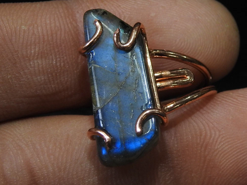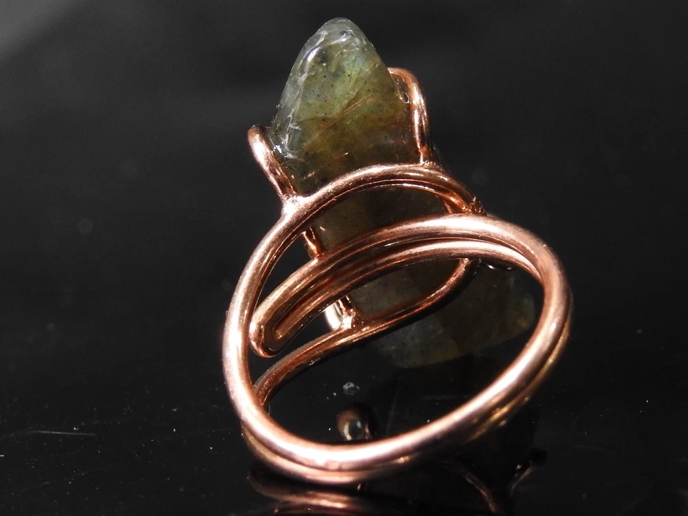 Natural Labradorite Multi-Flash Ring with Copper Wire Wrapping