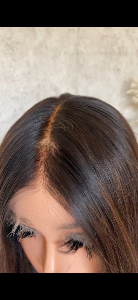 HD Lace Closure Wig, single drawn. Silky straight virgin hair. Custom coloured in brown foilayage highlights with soft front layers. Pre bleached and pre plucked for a realistic scalp and hairline. Lace Type - HD Length - 12” Colour - Brown Highlights Hair Type - Virgin Vietnamese Human Hair Density - 180% Cap - 5x5 Size - Medium - 22”-23” Strap - Elastic x2 Comb Attachments - x3 This wig is ready to wear and will be shipped in the style as pictured. R