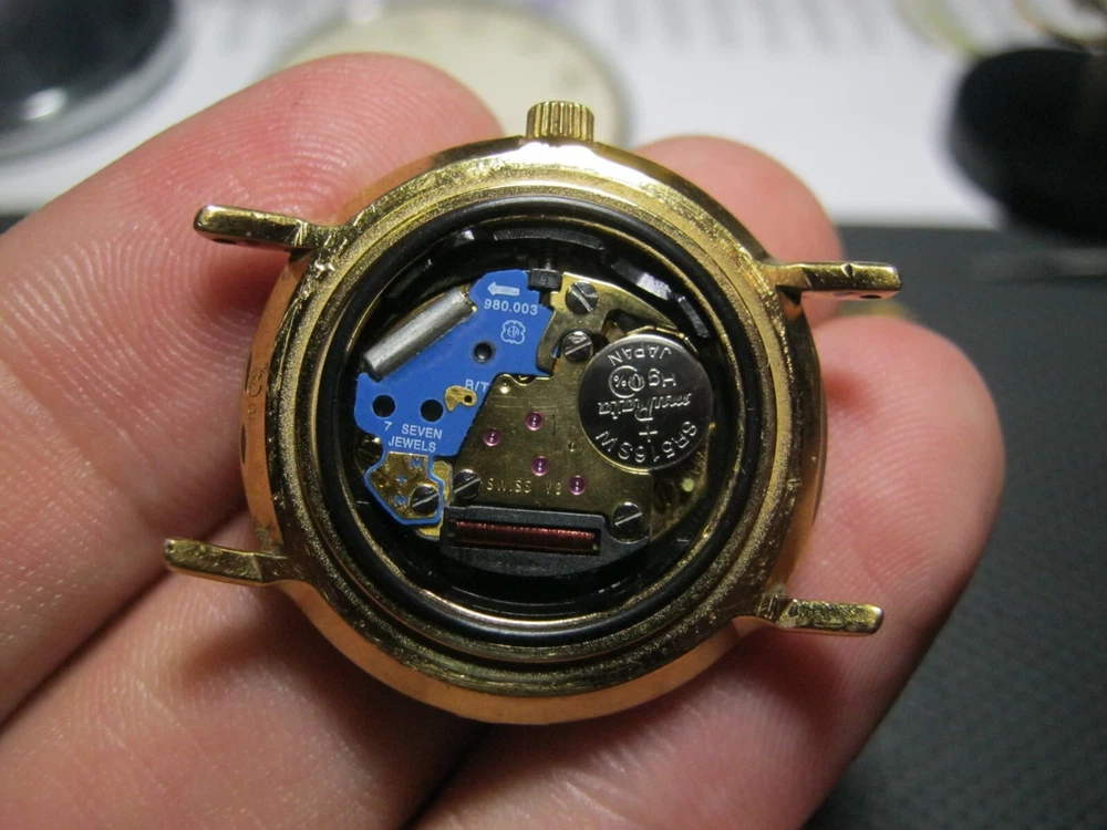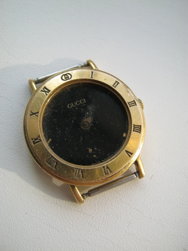 the watch was in very poor condition (last photo) - the mechanism is replaced but new, 100% similar (except for the Gucci marking, of course) - dial defects are tinted, it is noticeable if you look closely - new hands - new glass - new leather belt significant damage near the crown the watch has a lot of small defects, but overall, it's much better than it was case diameter - 26 mm without crown