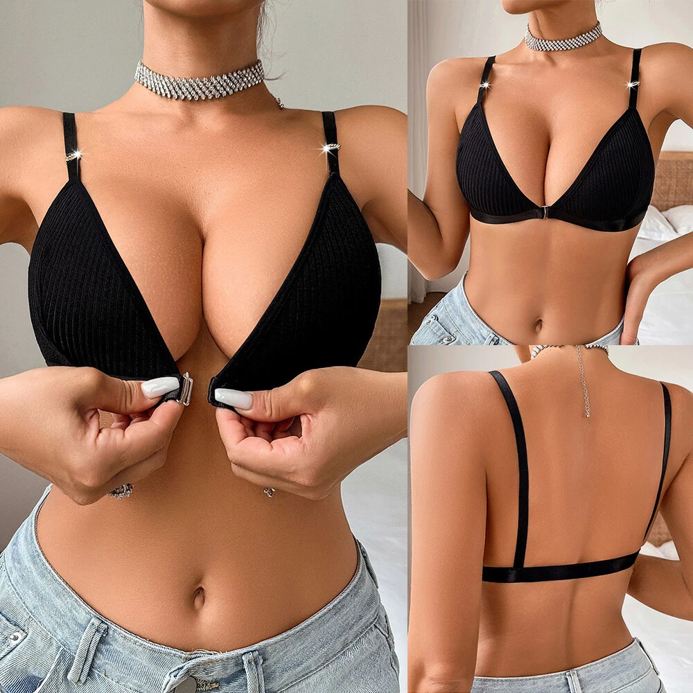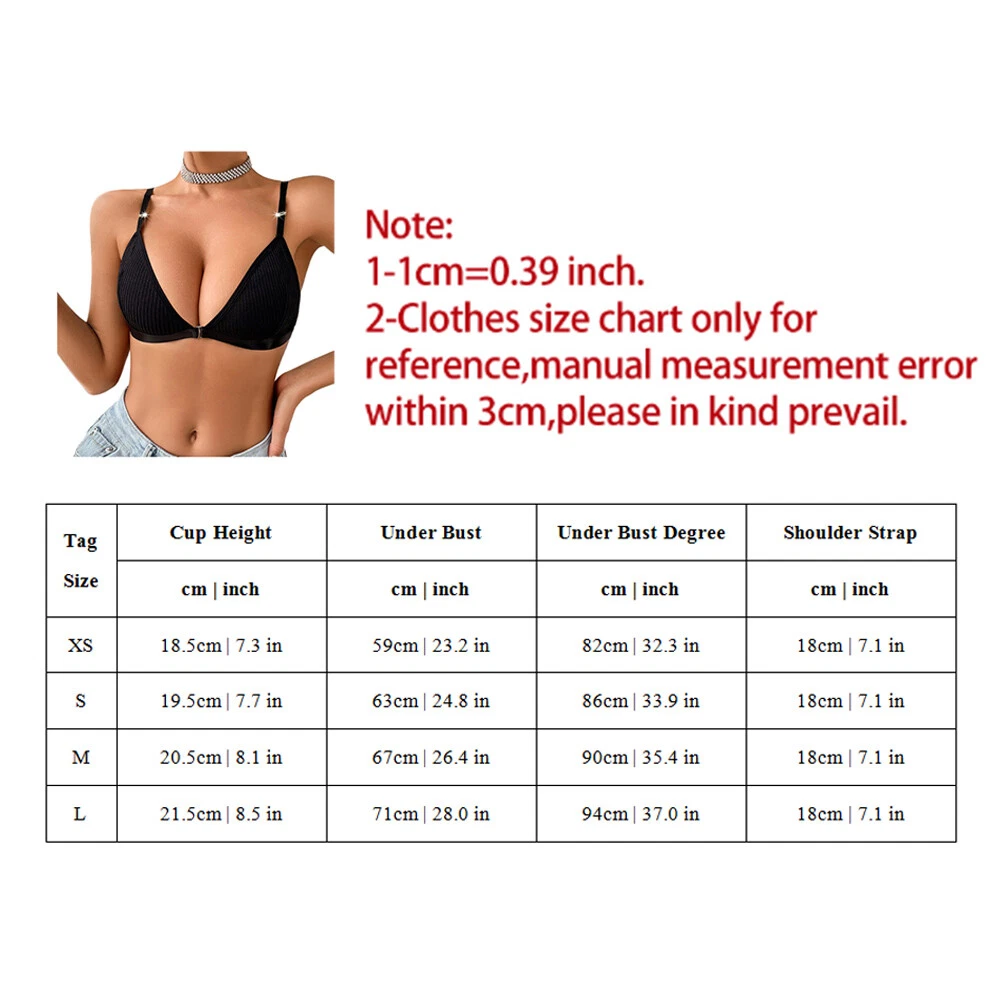 Sexy Backless Bras Seamless Wire Free Bralettes Front Closure Triangle Cup Features: Sexy half-cup bra with a stylish deep V-neck design that makes your breasts look great! Wear it with your favorite necklines and dresses, ensuring you'll feel flatteringly supportive no matter the occasion. Whether you're working out, shopping, or on a date, our triangle bralette give you the freedom of movement and flexibility you need. Style:Casual,Sexy Size:XS\S\M\L Material: Nylon,Spandex Color:Black Season:Spring/Summer/Autumu/Winter Package Includes:1 x Bra Notes 1.Manual measuring.please allow 1-3cm error,thank you 2.Due to the difference between dilferent monitors,the picture may notreflect the actual color of the item. We guarantee the style is the same as shown in the picture.