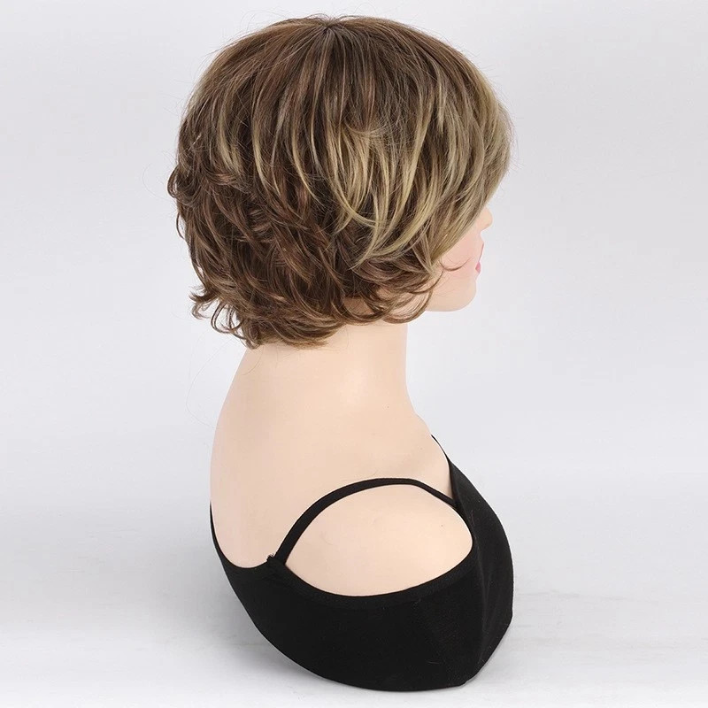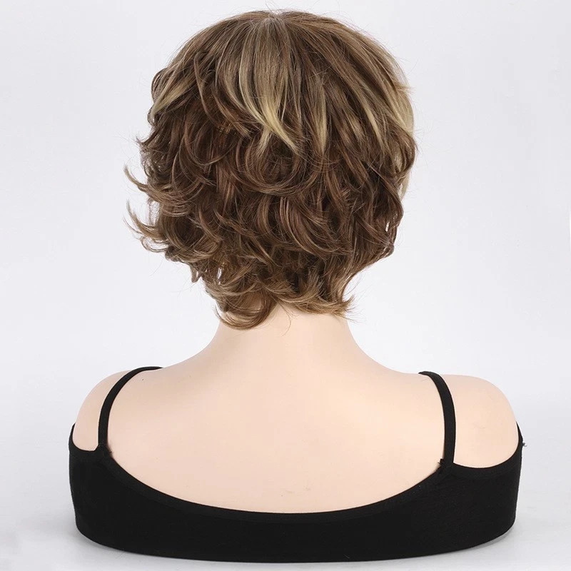 $ 32.19Women Dark Brown w/Gold Highlight Ombre Shoulder Length Curly Hair Wig&