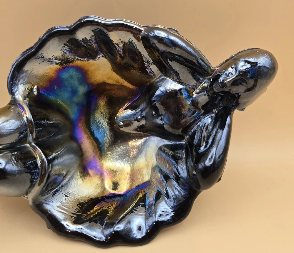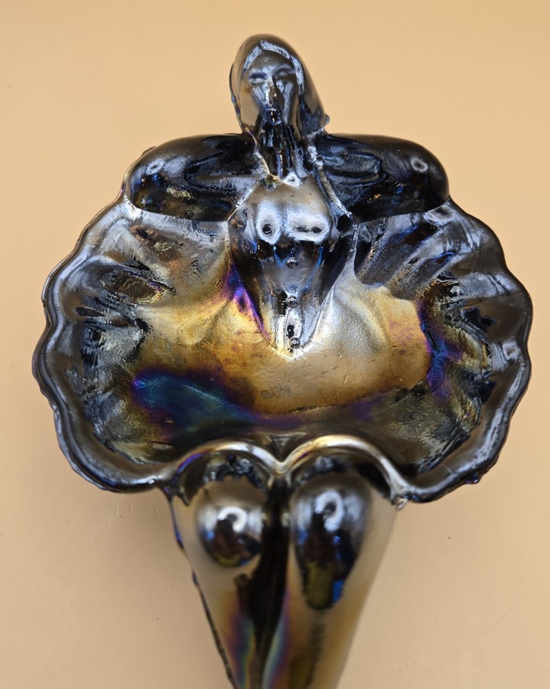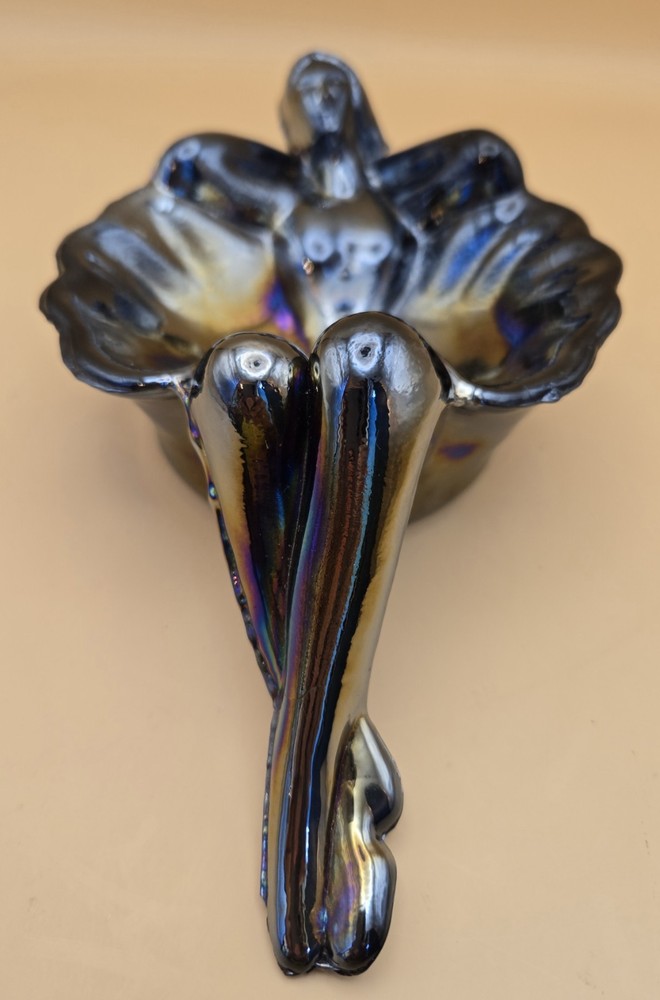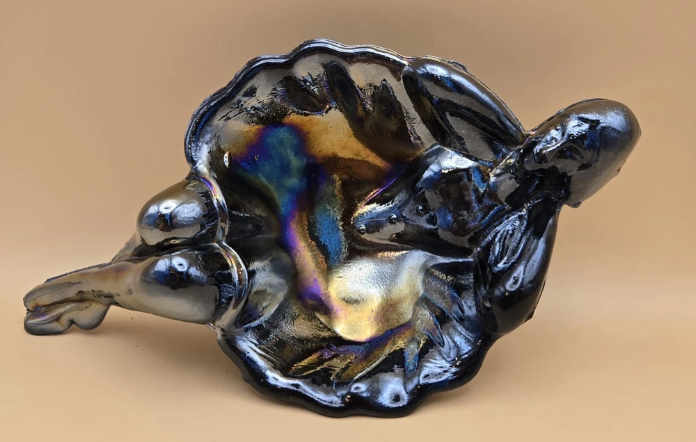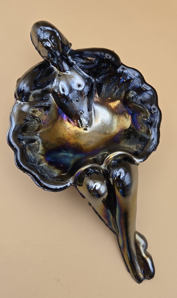 The Lady Elegance Fenton Art Glass soap dish or bowl is a rare and elegant piece from the early 20th century. This small sculpture, featuring a beautiful woman, is crafted from glass and showcases intricate details typical of Fenton art glass. With its light sculpture format and production technique, this unique piece is a timeless addition to any art collection, made in the United States during the 1960s. Gently used condition. No chips or cracks or scratches. Thank you for viewing.