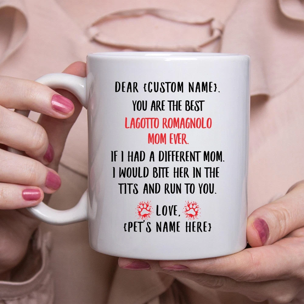 Lagotto Romagnolo Mom Gift Personalized Mothers Day Gift Mug Custom Name Gifts Product Details.. This high quality 11oz. ceramic white mug has a premium hard coat that provides crisp and vibrant color reproduction sure to last for years. Perfect for all hot & cold beverages. The highest quality printing possible is used. It will never fade no matter how many times you wash it. Material: 100% Ceramic. Print both sides. Dishwasher and Microwave Safe. High Gloss + Premium White Finish. Printed in the U.S.A. Personalized & Custom. We support personalized and custom mug to add custom, when placing an order, you can add notes to the "order note" in shipping address section. Also you can contact us directly via message. Shipping Info. Ready to ship in 1 to 2 business days, All products are made-to-order and proudly printed in the United States. Shipped by USPS and DHL, You will receive your order in 5-7 days. Replace & Refund. All products are defective during shipping broken, chipped will be replaced free of charge. You are not satisfied with the product, we will refund 100% money to you. If any other issues arise, please do not hesitate to message, we would be more than happy to assist you.