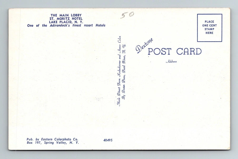 Lake Placid NY-New York, St. Moritz Hotel, Antique Vintage Souvenir Postcard