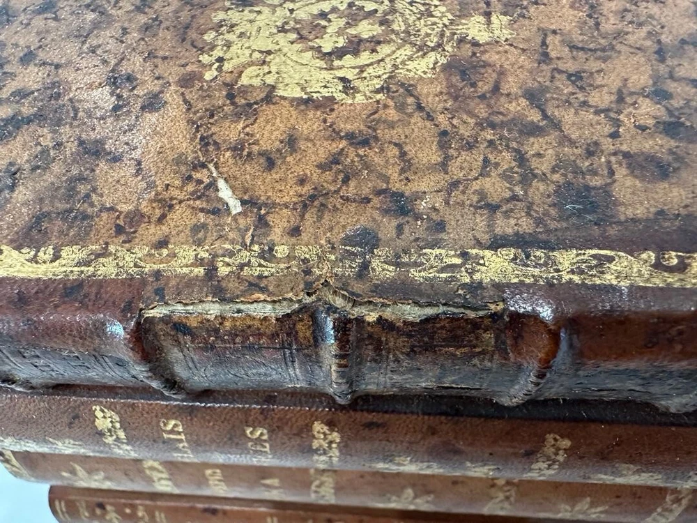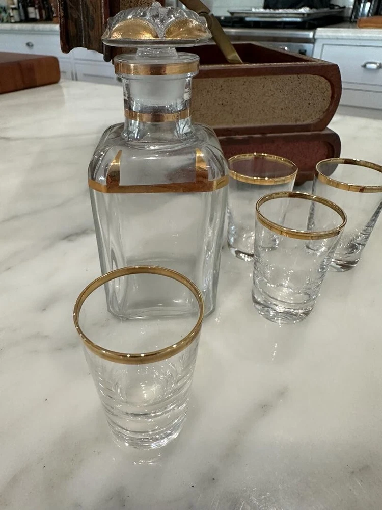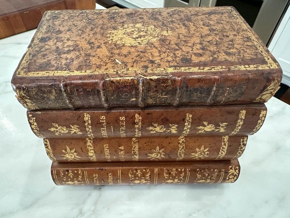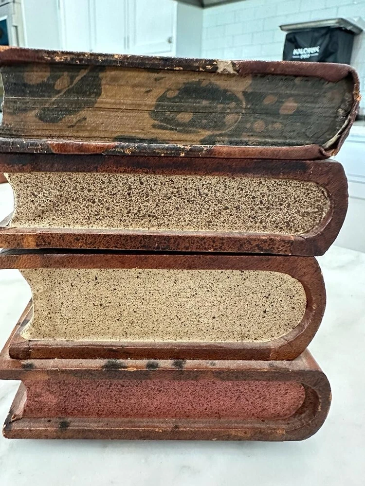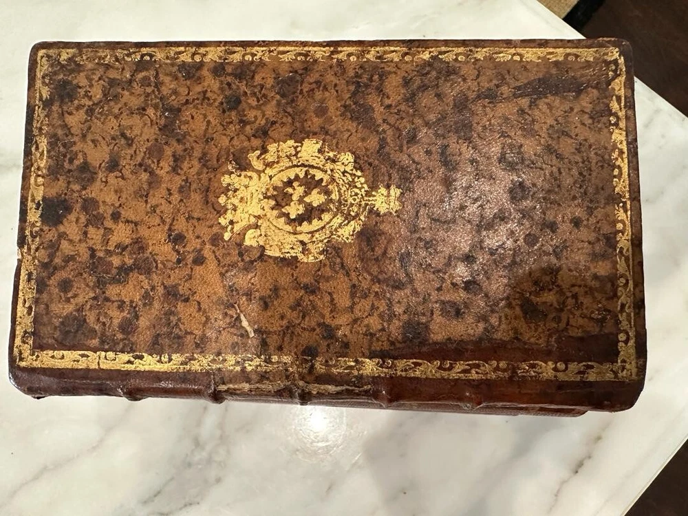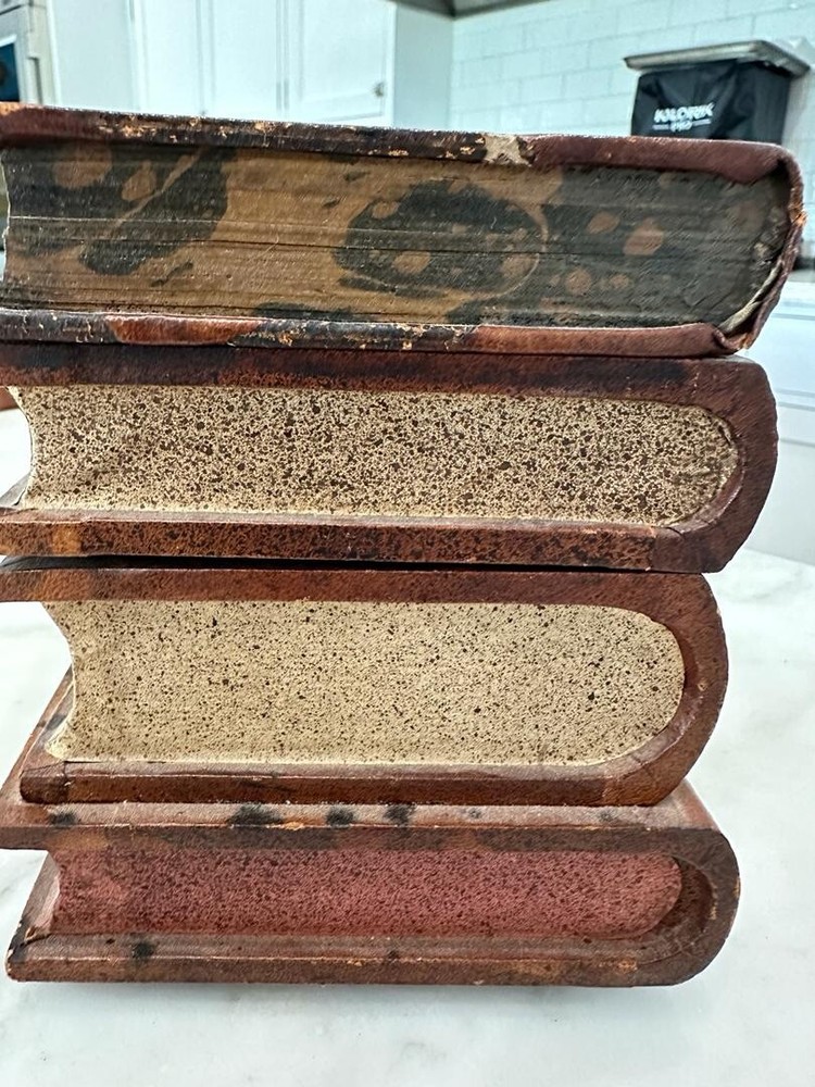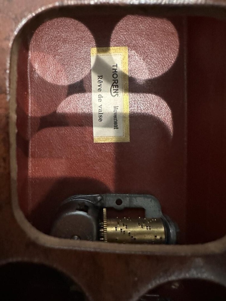 This is an incredible French music box with a Swiss musical movement. Its from the late 1800’s and is in gray condition for its age. It is also in working condition and has a beautiful melody. I bought this in L’isle sur la sorgue in France. This musical box looks on the outside like a set of leather French books. Once you open the box the music plays and inside of the box you have a small bottle for cognac decanter and some glasses. Measurements Box 6 3/4 inches wide x 4 inches deep x 5 1/2 tall Liquor bottle 1 3/4 wide 4 glasses 2 inch tall x 1 1/4 wide NO returns please ask all questions before bidding. Thank you!