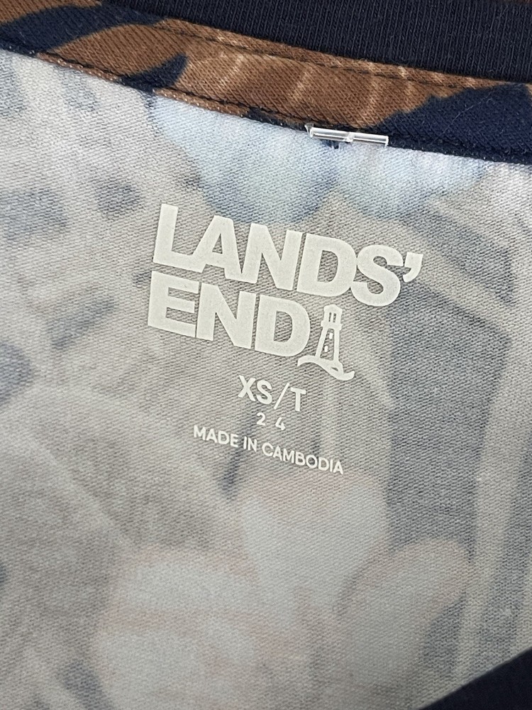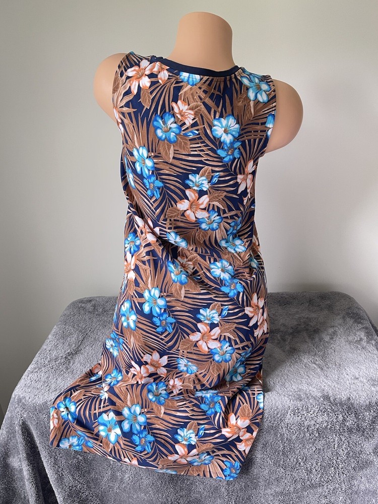 Lands End Blue Floral Pin Tuck Beach Dress Coastal Tropical XS Tall