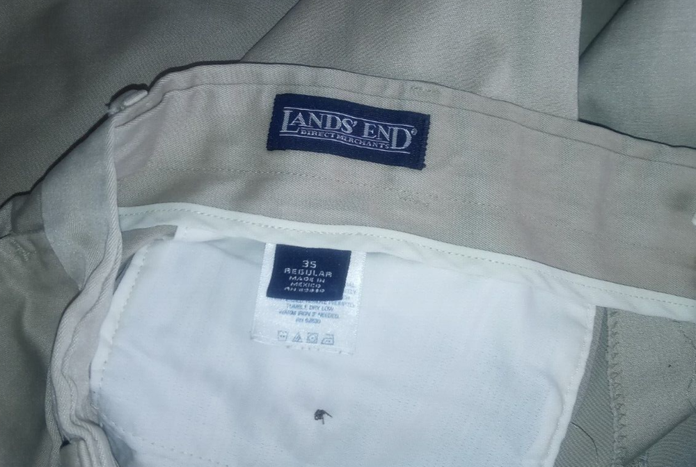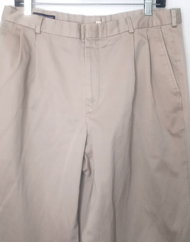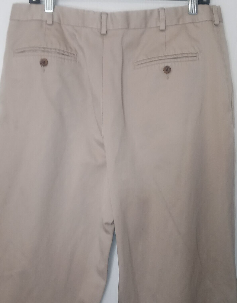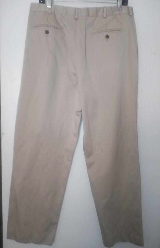 Lands End Mens Twill Pants 35x29 Tan No Ironing Twill 426830 Pleated Excellent Condition 2/5