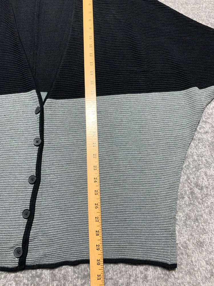 * Lane Bryant Women Button Front Cardigan Size 18/20 Black Gray Dolman SleeveLane Bryant Women Button Front Cardigan Size 18/20 Black Gray Dolman Sleeve * *Good Pre-owned Condition *Please see photos for approximate measurements (in inches), fabric make, washing instructions, and other notable details. *Purchased items are shipped out next business day.