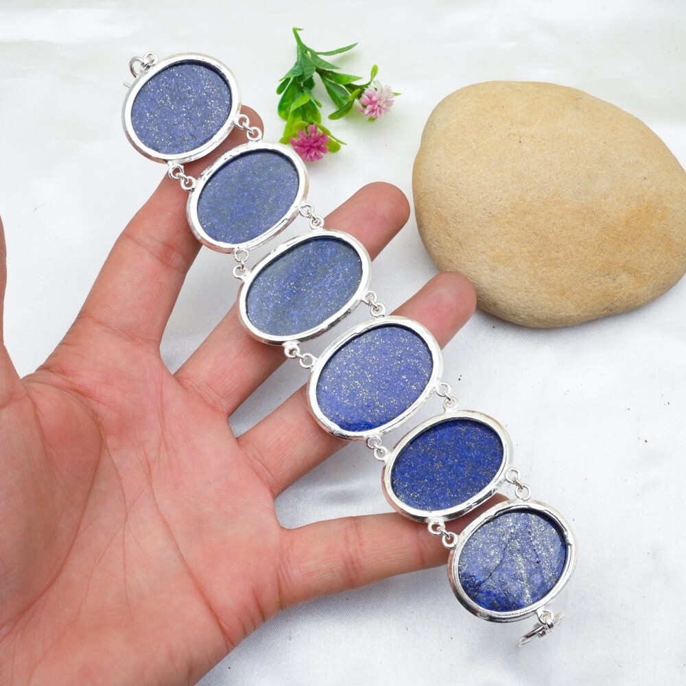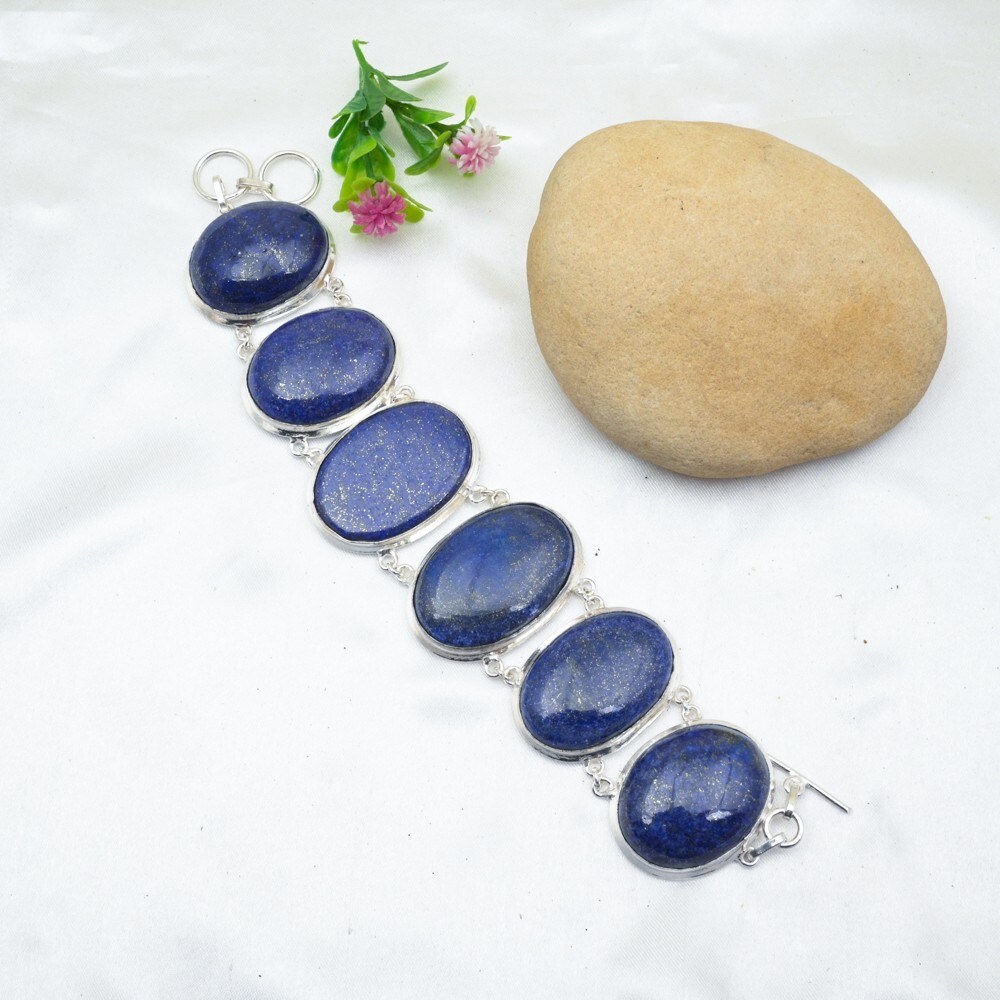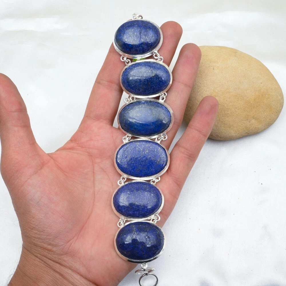 Cut Grade:ExcellentTotal Carat Weight:10 carat and aboveNumber of Gemstones:6Metal Purity:925Number of Diamonds:N/AFeatures:AdjustableTheme:Beauty, Bohemian, Ethnic, Halloween, LoveMain Stone Depth:N/ACountry of Origin:IndiaOccasion:Anniversary, Birthday, Christmas, Engagement, Mother's Day, Valentine's Day, WeddingSecondary Stone:Lapis LazuliColored Diamond Intensity:N/AMain Stone Width:N/AMain Stone:Lapis LazuliDiamond Clarity Grade:N/AStyle:ChainMain Stone Creation:NaturalDiamond Color Grade:N/AMaterial:GemstoneCollection:HandmadeType:BraceletCountry/Region of Manufacture:IndiaItem Length:8 inches with Adjustable ChainBrand:HandmadeMetal:Sterling SilverColor:SilverBase Metal:Sterling SilverMain Stone Treatment:Not EnhancedMain Stone Color:BlueMain Stone Length:N/ACertification:N/AShape:Same As PictureMain Stone Shape:OvalChain Type:N/AClosure:ToggleSetting Style:BezelCharm Type:Same As Picture