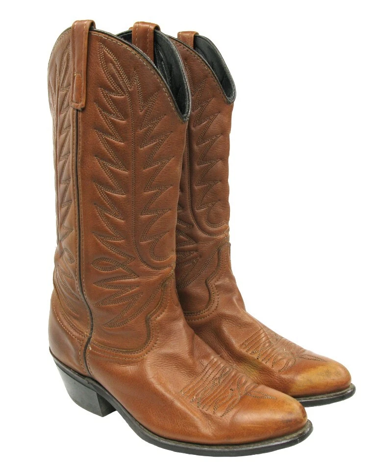 US Shoe Size: 7 Department: Men Upper Material: Leather Toe Shape: Almond Toe Color: Brown Style: Western Brand: Laredo Type: Boot Features: Comfort Pattern: Western Closure: Pull On Shoe Width: EW Accents: Embroidered