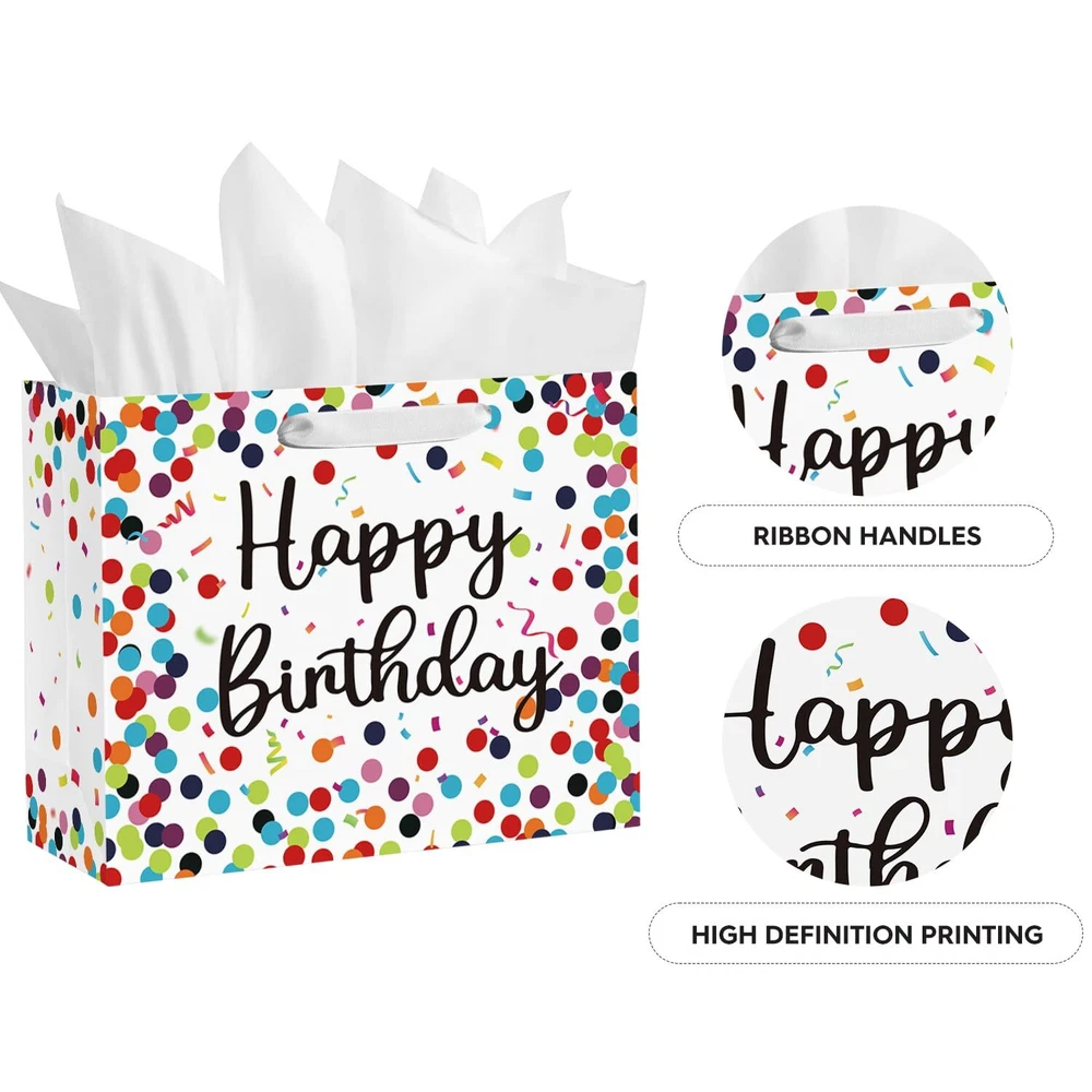 eBay Product Listing Welcome to Your Favorite My Store Your satisfaction is our top priority – Shop confidently 13" Large Gift Paper Bags With Tissue Paper and Card - Happy Birthday Dots Streamers for Men, Women, Kids - 4Pcs Item Gallery Item Description Ideal Size: This paper bag measures 13×10.2×4.9 inches, providing the perfect size for a variety of birthday gifts such as clothing, toys, cosmetics, and more. The spacious interior ensures your gifts are well-protected. Eco-Friendly Material: Crafted from high-quality, eco-friendly paper, this bag is durable and reusable. Celebrate birthdays while contributing to the preservation of the environment. Birthday Themed Design: Featuring an attractive birthday-themed design, this paper bag adds a festive touch to your gift. The unique patterns and color scheme make it a thoughtful and caring choice for the recipient. Complimentary Greeting Card: A 6×8 inch birthday greeting card is included with the bag, allowing you to express your best wishes. The card is made of high-quality paper for smooth writing, conveying your warm sentiments. Practical and Convenient: With a reinforced bottom for added strength and a comfortable handle for easy carrying, this paper bag is both practical and stylish, enhancing the presentation of your birthday gift. Special Features Birthday Gift Bag with Card and Tissue Paper Our Guarantee To You We offer fast shipping, free delivery, and 100% customer satisfaction guarantee. Not satisfied? Return your item for free within 30 days. 30-Day Free Returns Shipping Details Items will be sent to your eBay address. Please verify before purchasing. Typical delivery within 3-7 business days. Professional shipping services used for all orders. We ship to the continental US (48 states only). Unable to deliver to Alaska, Hawaii, or territories. No APO/FPO or PO Box deliveries available. We use eco-friendly packaging Payment Options We accept these secure payment methods: All transactions securely processed through eBay's payment system. Simple Returns 30-Day Satisfaction Promise Contact us through eBay messages within 30 days of delivery. We'll provide return instructions and our address. Return the item in its original condition. We'll process your refund within 48 hours of receiving the item. Get In Touch Have questions about your order? Contact us through eBay messaging for prompt assistance. We typically respond within 24 hours.