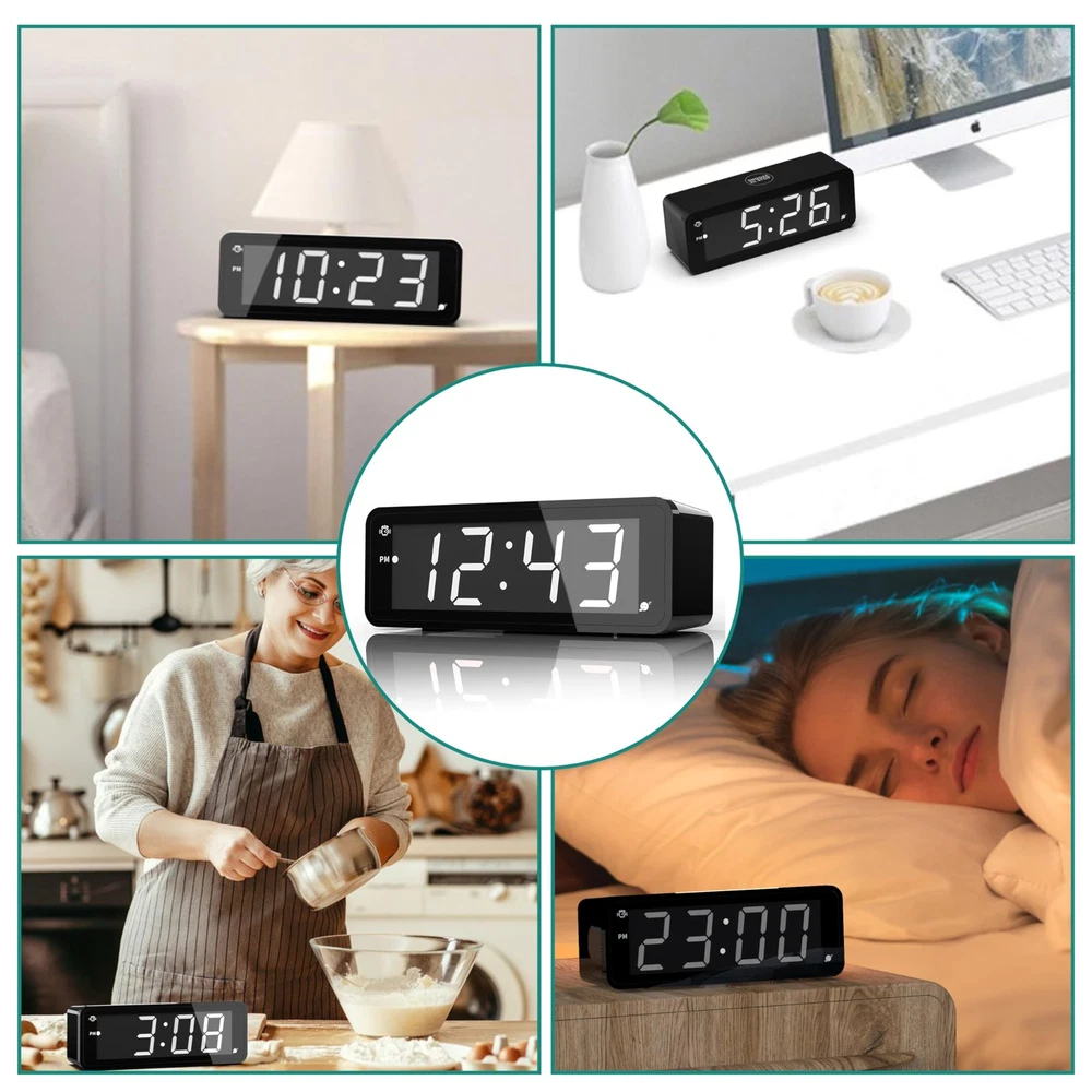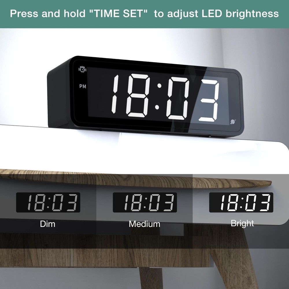This alarm clock is a game-changer! The huge 1.8" red LED numbers are so clear, even from across the room—perfect for seniors or anyone who struggles with small displays. I love the adjustable brightness settings, and the auto-dimming feature at night is brilliant for peaceful sleep without harsh light. The 24-hour format is super convenient, and the bold display makes it easy to check time in the dark. Battery-powered means no cords cluttering your nightstand. It's simple, functional, and exactly what I needed for a reliable wake-up!