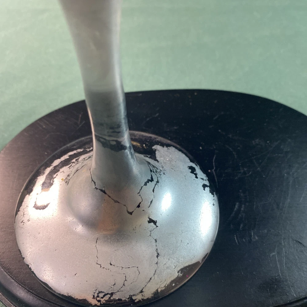 Handmade glass, I don't know what technique, but it's not painted. As if silver was added to the glass;) without chips and cracks