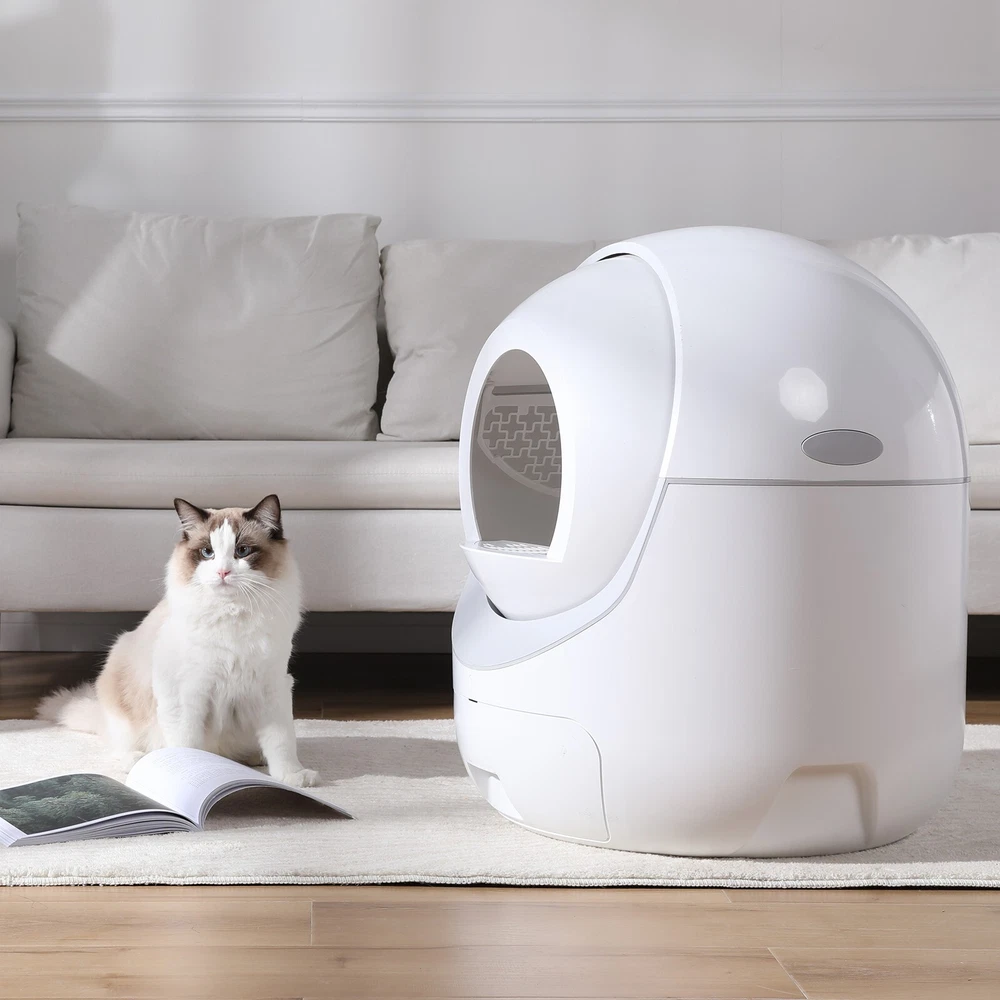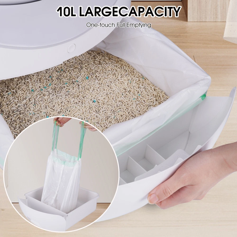 ITEM DESCRIPTION Descriptions: We are dedicated to providing premium, easy-to-use and long-lasting pet supplies with the best service to every customer. Our team all love pets and technology. We truly believe that every pet deserves a long and healthy life full of happiness and love. We care about pet life and health, and hope to provide you and your pet with the most comfortable experience through our products. Effortless Cleaning: Our automatic cat litter box takes the hassle out of maintaining a clean and odor-free environment for your beloved feline friend. No more scooping and sifting – the advanced self-cleaning mechanism ensures your cat always has a fresh and hygienic litter box to use. Advanced Odor Control: Equipped with a cutting-edge odor elimination system, this self cleaning cat litter box neutralizes unpleasant smells and keeps your home fresh and inviting. Enjoy a clean, odor-free space, without the need for constant maintenance. Eco-friendly and Cost-effective: By reducing the amount of litter wasted and minimizing the frequency of litter changes, our automatic litter box not only helps you save money but also contributes to a greener planet. Spend less on litter and reduce your carbon footprint at the same time. Quiet and Discreet Operation: Designed with your home in mind, this self cleaning litter box operates quietly and discreetly, ensuring it doesn't disturb your daily life. The compact design allows it to blend seamlessly with your home decor while providing your cat with a comfortable and private space. Safety First: Our cat litter box self cleaning is engineered with your cat's safety as a top priority. Featuring sensors that detect your cat's presence and a delay mechanism that prevents the cleaning cycle from starting while your cat is inside, you can have peace of mind knowing your feline friend is safe and sound. Easy Set-Up and Maintenance: With simple assembly instructions and an intuitive design, our self cleaning litter box for multiple cats is a breeze to set up and maintain. Plus, the removable components make it easy to clean, ensuring you can provide your cat with a consistently hygienic environment. Features: Safety, The top priority: Protect your pet with three layers of advanced safety technology that stop working whenever your cat is detected. Secure induction motor protection. Physical separation anti-pinch device. Gravity sensing device stop when cat step on. Clearance Function: Easy for you to simply and replace cat litter. When it needs to be cleaned and replaced at one time, you can press and hold the button for more than 7s and release it after hearing the emit a didi, or use the clearing button in the mobile APP to perform the clearing operation. Connected Smart Home App: Remotely take track of your cats situation.You can access and adjust settings and view activity reports anywhere you have an internet connection. Easy to Disassemble, Screw Free: There is no need to assemble after receiving .When cleaning it, you don't need to screw down. It can be easily disassembled in 10 seconds. Major parts are washable. We recommend cleaning the trash can at least once a week, the frequency of cleaning depends on the cat's family. High Capacity&Large Space: The large interior space provides a good toileting experience for cats. It has 10L waste drawer and 6L cat litter capacity, which can support 2 weeks without cleaning. Don't worry when the pet owner on short trips. It is suitable for cats: 2.2lb-28lb. Who am I? Your smart pet life assistants Smart chip, anti-pinch design, your cat must be safe. Fully automatic work, no more frequent manual cleaning of cat litter. Large capacity design, 2.2-28lb cats can be used. Full cat litter compatible, automatic deodorization design Safe & Smart Self Cleaning Cat Litter Box, equipped with 4 highly sensitive gravity sensors and an anti-pinch motor. It will not work when there are cats inside or nearby. When there is an abnormality in the work, Self Cleaning Cat Litter Box will stop immediately to ensure safety. And supports remote operation via Wi-Fi link app, you can check the remaining amount of litter/remaining space in the litter box/machine status in the app. All running messages will be sent to your phone through the app. Large Capacity & Support Most Cat Litter Large Capacity: Automatic Cat Litter Box, has a internal space of 70L, a trash collection box of 10L. Maximum support 6L of cat litter, enough to use 15 days for one cat. Automatic Cat Litter Box, is suitable for cats weighing between 2.2lb to 28lb. Available for almost all cats Support Most Cat Litters: It's suitable for Tofu Litter, Bentonite litter, Sodium based litter, Mixed Litter and all other kinds of cat litters, except crystal cat litters. Odor Removal & Easy to Wash Odor Removal: Independently developed purifying device releases ozone to remove unpleasant odors. After each excrement shoveling, it will purify automatically to remove peculiar smell timely, keep the air fresh. Easy to Disassemble and Wash: There is no need to assemble. It is easy to disassemble without tools. The top cover, hatch and toilet bin are all washable. Specification: Material: Eco-friendly plastic Capacity: 70L Drum Space + 10L Drawer Capacity Color: White Product Dimensions Assembled Length (in.):22.24 Assembled Width (in.):22.24 Assembled Height (in.):25.98 Item Weight: 25 Pounds Target Species: Cat Weight Limit: 28 Pounds Allergen Information: Allergen-Free Package Included: 1x Self-cleaning Cat Litter Box 1x User Manual PAYMENT SHIPPING RETURNS ABOUT US PAYMENT SHIPPING RETURNS ABOUT US STORE HOME HOT ITEMS ADD TO FAVS FEEDBACK CONTACT US Copyright ©smartbattery169. All rights reserved