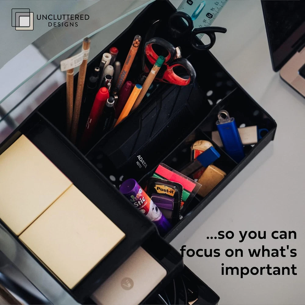 Free eBay listing template designed by dewiso.com Uncluttered Designs Large Black Vanity Organizer - Countertop Mens Organizer With Drawers for Cologne, Deodorant, Beard, Shaving Lotion, Perfume & Skincare - Perfect for Bathroom & Bedroom Storage FREE AND FAST SHIPPING! About this item LARGE CAPACITY CLUTTER FREE STORAGE - Seamlessly blending elegance and functionality, our large capacity organizer is designed for everyday use. Offering versatile storage for makeup, vanity essentials, office supplies & kitchen items. Ensuring a clutter-free space with multiple compartments & drawers. EXTRA DEEP DRAWERS FOR AMPLE STORAGE - Featuring 7 spacious compartments & 2 extra deep drawers, our versatile organizer will store a variety of items from lotions, makeup brushes, lipsticks to office supplies and kitchen essentials. HIGH-QUALITY MATERIALS - Our cosmetic storage box is made of high-grade, non toxic & odorless plastic, ensuring you can safely store delicate cosmetics & skin care products. EASY CLEAN WATERPROOF & WASHABLE - Completely waterproof and washable, our organizer offers superior drainage, making it ideal for skincare, beauty, toiletry & lotion products and other items that could cause a mess. Making clean up any spills easy! IDEAL GIFT - Our beauty organizer is the perfect choice as a gift to hypebeast boyfriend, son, husband, dad, and friends. Ideal gift for home warming, college dorm room essentials for men, Valentine's day, father’s day, thanksgiving day, christmas, birthday and wedding. › Product We offer a 30-Day Return Policy on items which you are not completely satisfied with. You have the option for a full-refund or an exchange of the item. No returns are available on items shipped outside of the US . Shipping We offer Free Shipping to the US and ship within 2 business days of payment, usually sooner. We use UPS express shipping. That's why your products are usually delivered within 3 days . Contact We try our very best to make sure every customer is completely satisfied. If there's a problem , message us! We're happy to help. 24/7 live chat available.