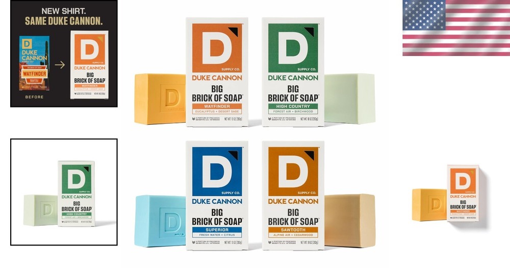 Large Brick Bar Soap Bundle - 10 oz x4 ‹ › ‹ › ‹ › ‹ › ‹ › ‹ › ‹ › ‹ › ‹ › ‹ › ‹ › Large Brick Bar Soap Bundle - 10 oz x4 Experience the refreshing power of Duke Cannon's Soap Bundle (4 Pack), meticulously crafted to cleanse away dirt, grime, and sweat, ensuring your skin feels clean and hydrated. Designed for the modern man who appreciates a bold masculine scent, this bundle offers a robust fragrance profile tailored for the hardworking individual. Fragrance Profile: Wayfinder, High Country, Superior, & Sawtooth Scents: Each soap features a unique, all-natural scent that marries earthy notes like cedarwood, sandalwood, and vetiver with refreshing citrus undertones, creating a rugged aroma that lingers. Free from harsh chemicals, ensuring a lasting fragrance without compromising on quality. Product Specifications: Size: Each soap bar is a generous 10 oz – 3x larger than typical men's soaps. Triple-milled: For enhanced quality, producing a rich lather that cleanses without stripping the skin. Perfect for: Hardworking men who prioritize healthy, refreshed skin and a captivating scent. Usage Instructions: Wet skin and rub the soap with hands or a loofah to create a lather. Apply thoroughly and rinse with water. Pat dry and store the soap in a dry dish for longevity. For best results, use regularly to maintain clean, nourished skin. Our Mission: Duke Cannon honors the values of hard work, chivalry, and patriotism, celebrating builders, creators, and those who serve. With a commitment to producing high-quality grooming products made in the USA, we reflect a deep respect for the hardworking men who embody these ideals. Choose Duke Cannon for grooming essentials that resonate with your values. Elevate your grooming routine with the Large Brick Bar Soap Bundle today! Shipping Free & Fast Shipping - We offer free shipping to most of the USA with a normal delivery time of 3-10 business days. However, due to various situations, additional delivery time (up to 3 weeks) may be required for some items. Alternative Carriers - We may use alternative carriers (e.g. USPS, FedEx, UPS, etc.) to ensure your package arrives safely and on time. Due to the use of multiple carriers, we are unable to provide a tracking number automatically. Handling Time - Orders are processed and shipped within 1-5 business days of receiving cleared payment. Shipping Restrictions - Shipping to Alaska, Hawaii, Puerto Rico, Guam, and other US territories may incur shipping charges or delivery restrictions. Please contact us before ordering, or your order can be refunded/cancelled. State Restrictions - There may be restrictions based on your state of purchase. For example, certain items may not be shipped to California due to state regulations. Contact for Tracking Updates - If you require tracking updates or have any concerns about the delivery of your order, please feel free to contact us, and we will be happy to assist you. Return 30-Day Hassle-Free Returns - We want you to be completely satisfied with your purchase. If you are not, you can return the item within 30 days of receiving it for a full refund or exchange. Easy Return Process - To start a return, simply contact us and we will provide you with a prepaid return shipping label and detailed instructions. Restocking Fee - There are no restocking fees for returns. However, the buyer is responsible for return shipping costs if the return is not due to a seller's error. Refund Processing Time - Refunds will be processed within 5 business days of receiving the returned item in its condition. Payment We accept all major credit cards, PayPal, and Apple Pay for your convenience. Your payment information is secure and encrypted to ensure a safe and seamless transaction. Please complete your payment within 3 days of purchase to avoid any delays in shipping. Feedback Your feedback is extremely important to us. We strive to provide the best products and customer service possible. If you are satisfied with your purchase, please take a moment to leave us a positive review. If you have any concerns or issues with your order, please contact us before leaving negative feedback. We are committed to resolving any problems and ensuring your satisfaction. Contact Us If you have any questions or concerns, please feel free to out to our customer support team. You can contact us through the eBay messaging system. We are available Monday to Friday, 9:00 am to 5:00 pm EST, and we will do our best to respond to your inquiry within 24 hours. Buy it now and enjoy a pleasant shopping experience! Unit Quantity: 1 Pack Scent: Wild Peaks Type: Assorted Soap Set Color: Multicolor Item Weight: 10 oz Size: Regular Skin Type: All Skin Types Shape: Rectangular