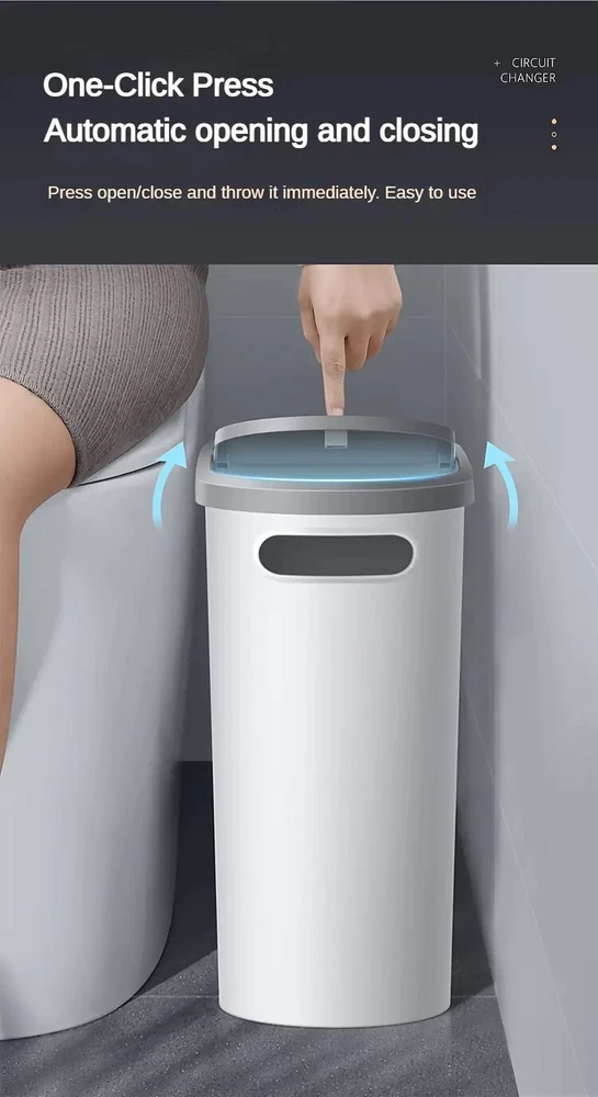 This large capacity bathroom trash can is designed with a creative slit and a lid for convenient and efficient waste disposal. The can has a solid pattern and is made of durable plastic material, making it suitable for indoor use. It has a capacity of 4 gallons and features an automatic opening and closing mechanism. The rectangular-shaped trash can has a matte finish and is designed in a modern style that complements any bathroom decor. It measures 12.5 inches in length, 12 inches in height, and 5 inches in width. This built-in or pull-out trash can is a unit type and comes in a quantity of one. It is perfect for any bathroom and is sure to keep your space clean and organized.