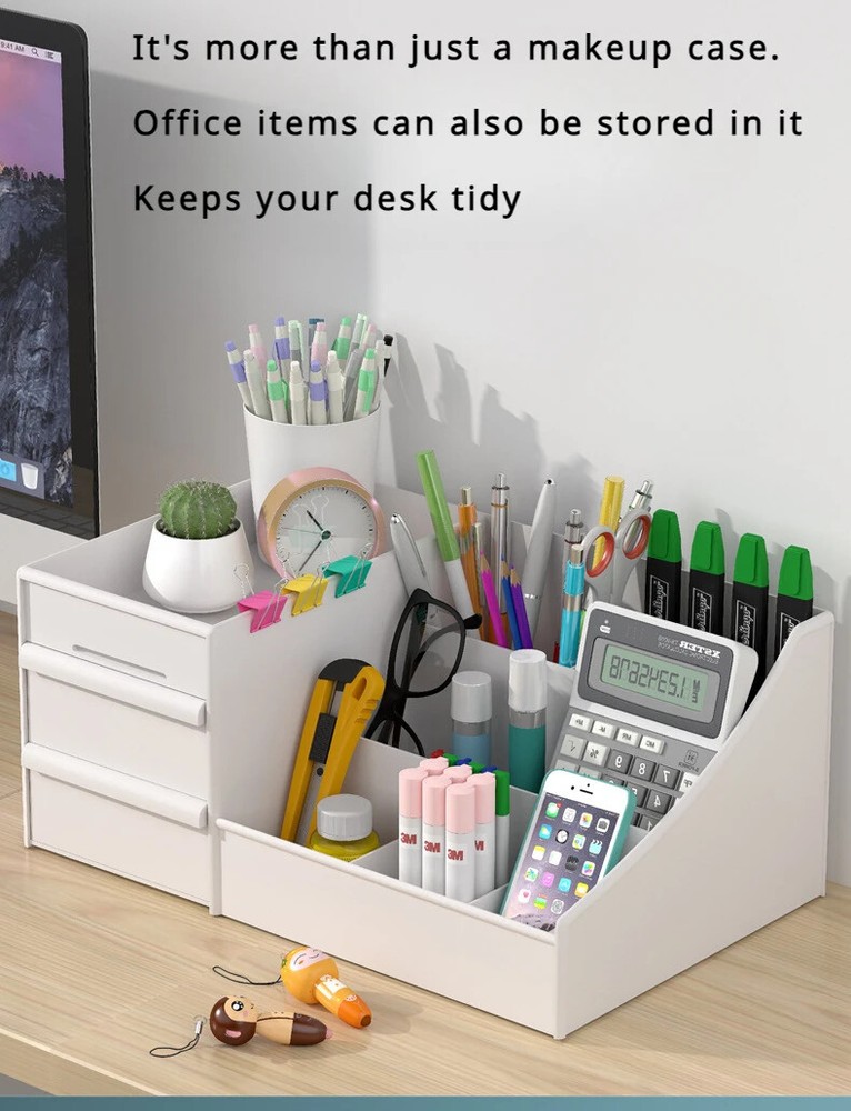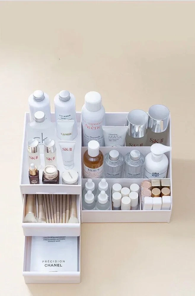 This organizer is a total game-changer for my cluttered vanity! It holds all my makeup, nail polishes, and even my favorite jewelry in one sleek spot. The size is perfect for my desk, and now everything's so easy to find. Love it!